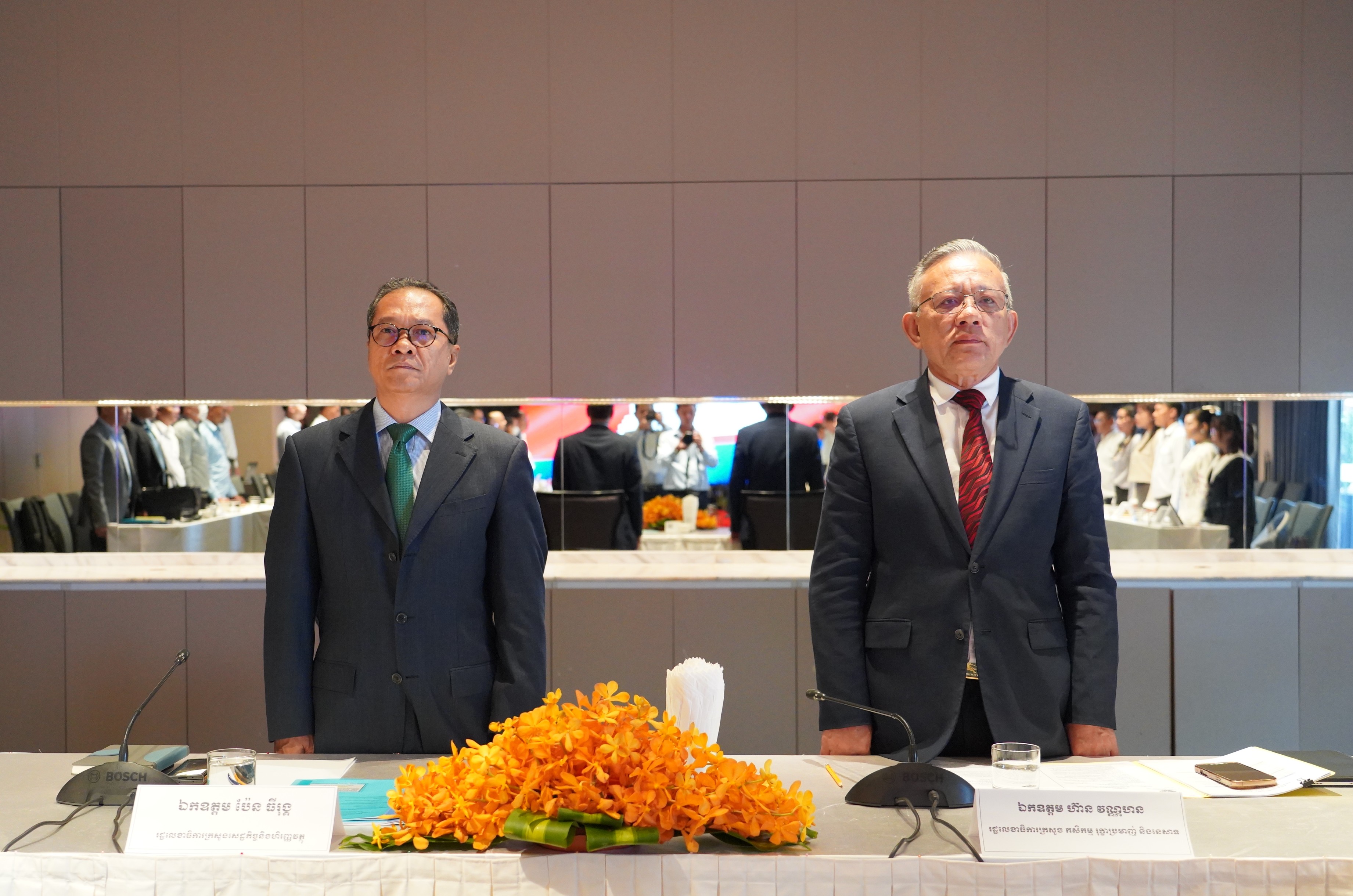 នៅថ្ងៃចន្ទ ៨រោច ខែភទ្របទ ឆ្នាំម្សាញ់ សប្តស័ក ព.ស ២៥៦៩ ត្រូវនឹងថ្ងៃទី១៥ ខែកញ្ញា ឆ្នាំ២០២៥ នៅសណ្ឋាគារ Sun & Moon Riverside អង្គភាពគ្រប់គ្រងគម្រោងបានរៀបចំកិច្ចប្រជុំ“គណ:កម្មការដឹកនាំគម្រោងប្រកួតប្រជែងខ្សែច្រវាក់តម្លៃ និងលើកកម្ពស់ សុវត្ថិភាពកសិកម្ម (ACSEP) ក្រោមអធិបតីភាពឯកឧត្ដមបណ្ឌិត ហ៊ាន វណ្ណហន រដ្ឋលេខាធិការ ក្រសួងកសិកម្ម រុក្ខាប្រមាញ់ និងនេសាទ និងជាសហប្រធាន ជាមួយនិងឯកឧត្តម ប៉ែន ធីរុង្គ រដ្ឋលេខាធិការក្រសួងសេដ្ឋកិច្ច និងហិរញ្ញវត្ថុ និងជាសហប្រធាន។ កិច្ចប្រជុំមានការអញ្ជើញចូលរួមពី ឯកឧត្តមបណ្ឌិត សរ ចិត្រា អគ្គលេខាធិការក្រសួងកសិកម្ម រុក្ខាប្រមាញ់ និងនេសាទ និងជានាយកគម្រោ រួមជាមួយនឹង ឯកឧត្តម លោកជំទាវ លោក លោកស្រី ជាសមាជិក សមាជិកាគណ:កម្មការដឹកនាំគម្រោង។ កិច្ចប្រជុំក៏មានការចូលរួមពីឯកឧត្តម លោកជំទាវ លោក លោកស្រី ជាអង្គភាពអនុវត្តគម្រោងនៃក្រសួងសេដ្ឋកិច្ច និងហិរញ្ញវត្ថុ ក្រសួងកសិកម្ម រុក្ខាប្រមាញ់ និងហិរញ្ញវត្ថុ និងក្រសួងអភិវឌ្ឍន៍ជនបទ តំណាងធនាគារដៃគូទាំងពីរ អគ្គនាយកដ្ឋានសហប្រតិបត្តិការអន្តរជាតិនិងគ្រប់គ្រងបំណុលនៃក្រសួងសេដ្ឋកិច្ច និងហិរញ្ញវត្ថុ ក្រុមទីប្រឹក្សាគាំទ្រការអនុវត្តគម្រោង(Project Implementing Consultant) ក្រុមទីប្រឹក្សាគាំទ្របច្ចេកទេស AVCC និងអង្គភាពអនុវត្តគម្រោងនៃមន្ទីរកសិកម្ម រុក្ខាប្រមាញ់ និងនេសាទខេត្តគោលដៅ។ កិច្ចប្រជុំមានគោលបំណង ១)ពិនិត្យលទ្ធផលនៃការអនុវត្តសកម្មភាពក្នុងឆ្នាំ២០២៥ កន្លងមក និងពិភាក្សាអំពីបញ្ហាប្រឈមនានា និងលើកជាដំណោះស្រាយសំដៅលើកកម្ពស់ការអនុវត្តសកម្មភាពប្រកបដោយប្រសិទ្ធផល និងប្រសិទ្ធភាព។ ២)ពិភាក្សាការរៀបចំផែនការសកម្មភាព និងថវិកាសម្រាប់ឆ្នាំ ២០២៦ ព្រមទាំងផ្តល់ការឯកភាព។