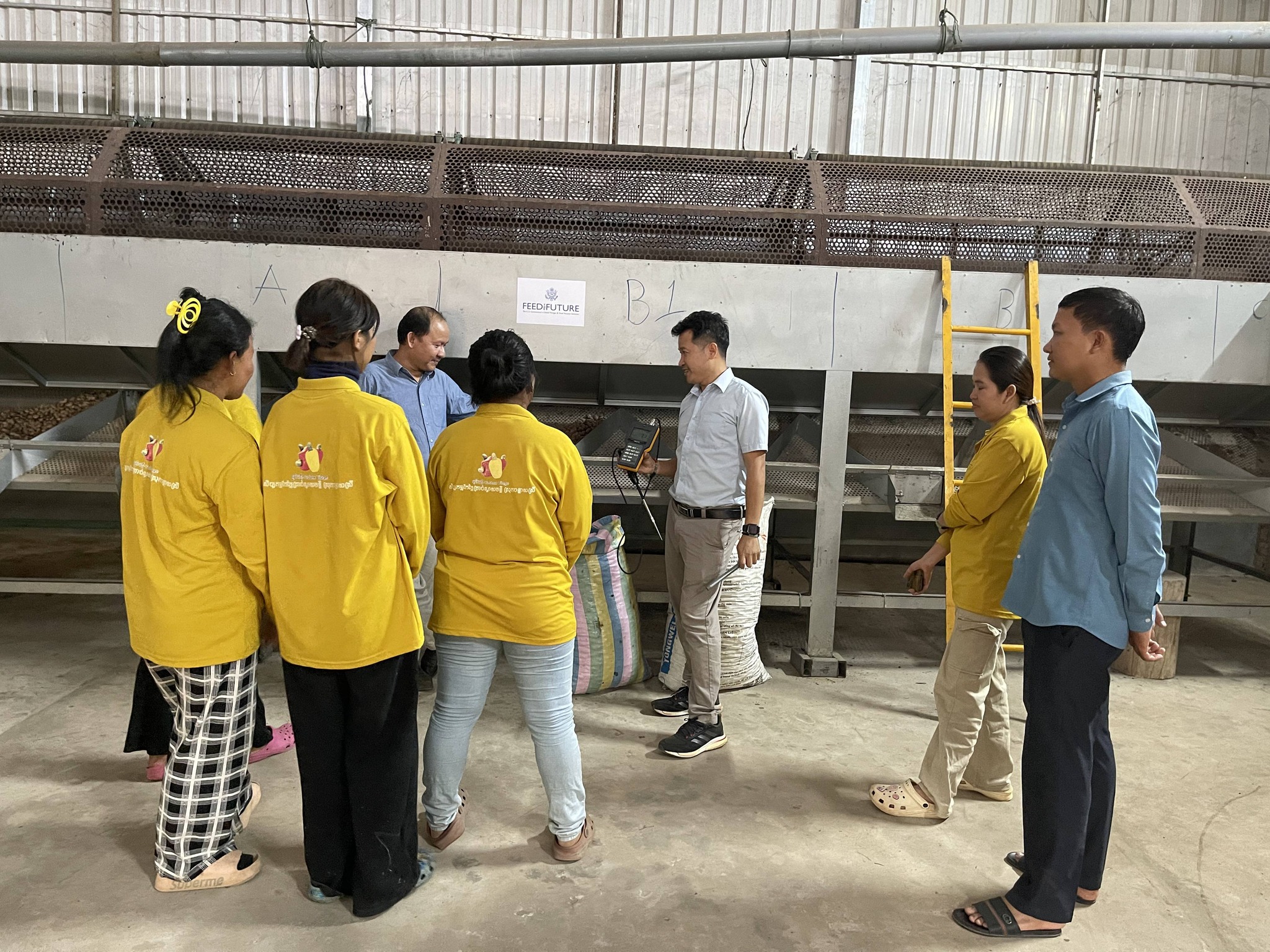 ៥. ការត្រួតពិនិត្យលើហេដ្ឋារចនាសម្ព័ន្ធដែលត្រូវកែសម្រួល រួមទាំងការគ្រប់គ្រងសុវត្ថិភាពផលិតផលចំណីអាហារ តាមរយៈការកំណត់អត្រាសំណើមគ្រាប់ស្វាយចន្ទី។