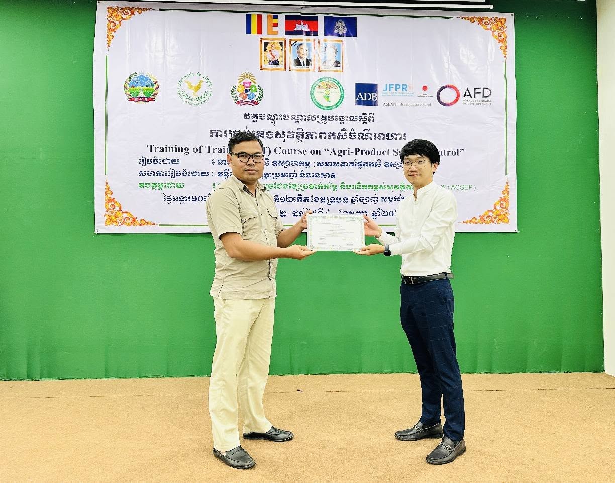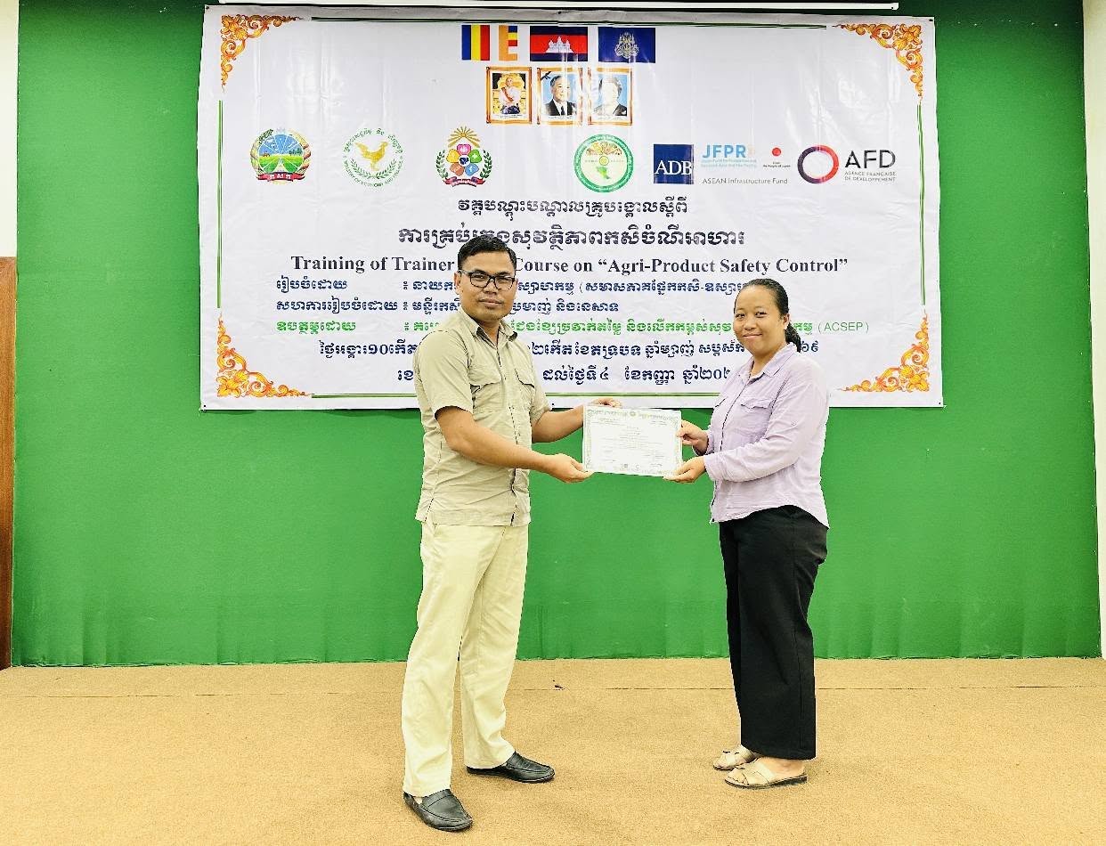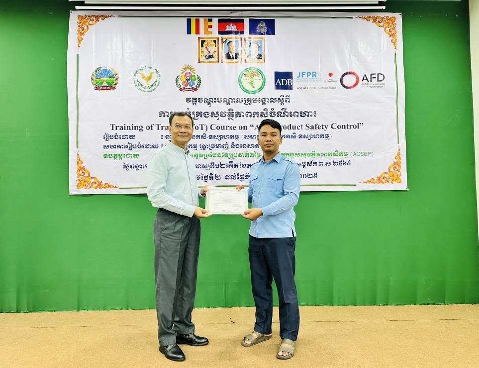 នៅថ្ងៃអង្គារ ១០កើត ដល់ថ្ងៃព្រហស្បត្តិ៍ ១២កើត ខែភទ្របទ ឆ្នាំម្សាញ់ សប្តស័ក ព.ស.២៥៦៩ ត្រូវនឹងថ្ងៃទី២ ដល់ថ្ងៃទី៤ ខែកញ្ញា ឆ្នាំ២០២៥ នៅទីរួមខេត្តកំពង់ចាម នាយកដ្ឋានកសិ-ឧស្សាហកម្ម ដែលជាអង្គភាពអនុវត្តគម្រោងនៃសមាសភាគផ្នែកកសិ-ឧស្សាហកម្មនៃគម្រោងប្រកួតប្រជែងខ្សែច្រវាក់តម្លៃ និងលើកកម្ពស់សុវត្ថិភាពកសិកម្ម (ACSEP) ដោយសហការជាមួយមន្ទីរកសិកម្ម រុក្ខាប្រមាញ់ និងនេសាទខេត្តកំពង់ចាម និងខេត្តត្បូងឃ្មុំ អង្គភាពអនុវត្តគម្រោងថ្នាក់ខេត្ត បានរៀបចំវគ្គបណ្តុះបណ្តាលគ្រូបង្គោលស្តីពី "ការគ្រប់គ្រងសុវត្ថិភាពកសិចំណីអាហារដល់មន្រ្តីជំនាញពាក់ព័ន្ធថ្នាក់ខេត្តនៃគម្រោង ACSEP" ក្រោមអធិបតីភាពបណ្ឌិត ហង់ សុវណ្ណ អនុប្រធាននាយកដ្ឋានកសិ-ឧស្សាហកម្ម និងជាប្រធានសមាសភាគផ្នែកកសិ-ឧស្សាហកម្ម តំណាងដ៏ខ្ពង់ខ្ពស់ ឯកឧត្តមបណ្ឌិត សរ ចិត្រា អគ្គលេខាធិការក្រសួង កសិកម្ម រុក្ខាប្រមាញ់ និងនេសាទ និងជានាយកគម្រោង ACSEP។