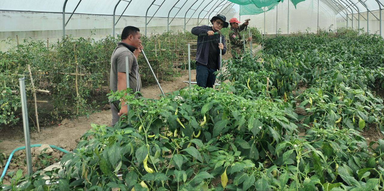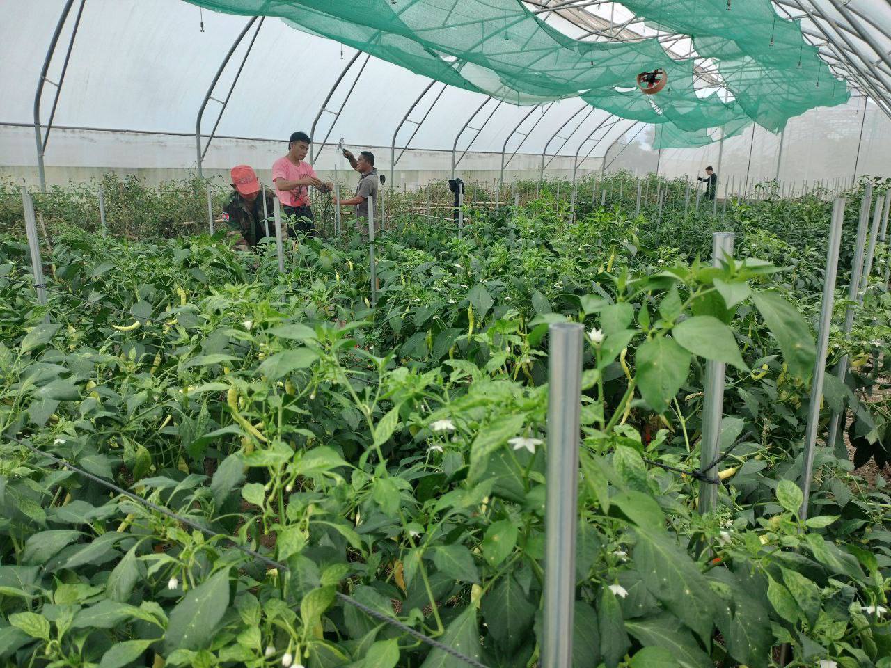- បានដាំបង្គោលចងខ្សែ ដាក់ទ្រើងប៉េងប៉ោះឆឺរី និងស្រឡាយម្ទេស