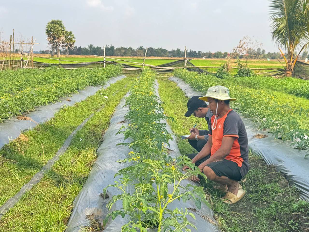 - ជាលទ្ធផល បន្ទាប់ពីក្រុមការងារបានចុះពិនិត្យពិសោធន៍ក្នុងខេត្តទាំងពីរ ឃើញថាពិសោធន៍ពហុកន្លែងលើដំណាំម្ទេស និងការដាំបង្ហាញពូជប៉េងប៉ោះឆឺរីកំពុងដំណើរការ ដែលស្ថិតក្នុងដំណាក់កាលចេញផ្កា និងផ្លែ។ សម្រាប់ការដាំបង្ហាញពូជប៉េងប៉ោះឆឺរី ដោយតាមការស្ទាបស្ទង់មតិរបស់កសិករ គឺពេញចិត្តនឹងពូជប៉េងប៉ោះឆឺរី ដែលមានការដុះលូតលាស់ល្អ ចេញផ្កាច្រើន ទិន្នផលខ្ពស់ និងមានរសជាតិឆ្ងាញ់។