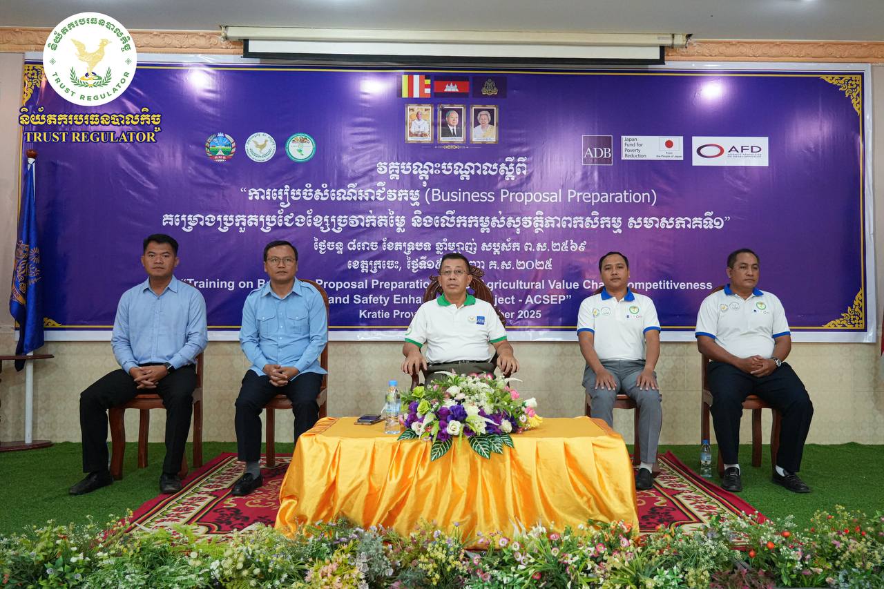 នៅព្រឹកថ្ងៃចន្ទ ៨រោច ខែភទ្របទ ឆ្នាំម្សាញ់ សប្តស័ក ព.ស.២៥៦៩ ត្រូវនិងថ្ងៃទី១៥ ខែកញ្ញា ឆ្នាំ២០២៥ និយ័តករបរធនបាលកិច្ច (ន.ប.ធ.) ដែលជាអង្គភាពអនុវត្តគម្រោងប្រកួតប្រជែងខ្សែច្រវាក់តម្លៃ និងលើក កម្ពស់សុវត្ថិភាពកសិកម្ម សមាសភាគទី១ (ACSEP-PIU1) ក្នុងក្រប ខណ្ឌក្រសួងសេដ្ឋកិច្ចនិងហិរញ្ញវត្ថុ បានរៀបចំបណ្ដុះបណ្ដាលស្ដីពី "ការរៀបចំសំណើអាជីវកម្ម" ដែលបានប្រព្រឹត្តទៅនៅសណ្ឋាគារ ហ៊ប៊ុន្នី ខេត្តក្រចេះ ក្រោមការដឹកនាំរបស់ លោក ប៉ូ សំអាង ប្រធាននាយកដ្ឋានស្រាវជ្រាវ បណ្ដុះបណ្ដាល និងសហប្រតិបត្តិការ និងជាប្រធានផ្នែកប្រតិបត្តិការនៃគម្រោង ACSEP-PIU1 តំណាង ឯកឧត្តម សុខ ដារ៉ា អគ្គនាយកនៃ ន.ប.ធ. និងជាប្រធានគ្រប់គ្រង គម្រោង ACSEP-PIU1។