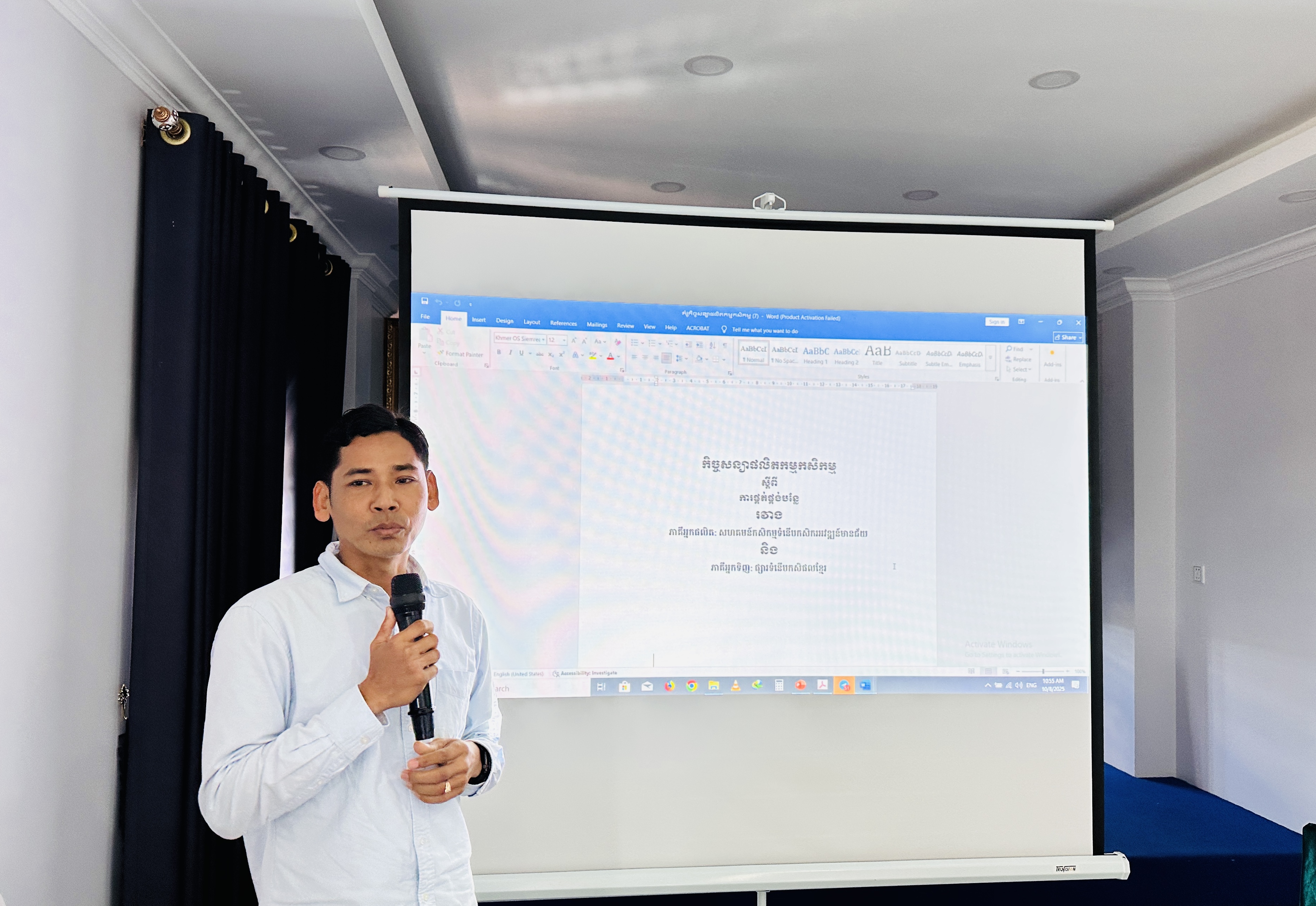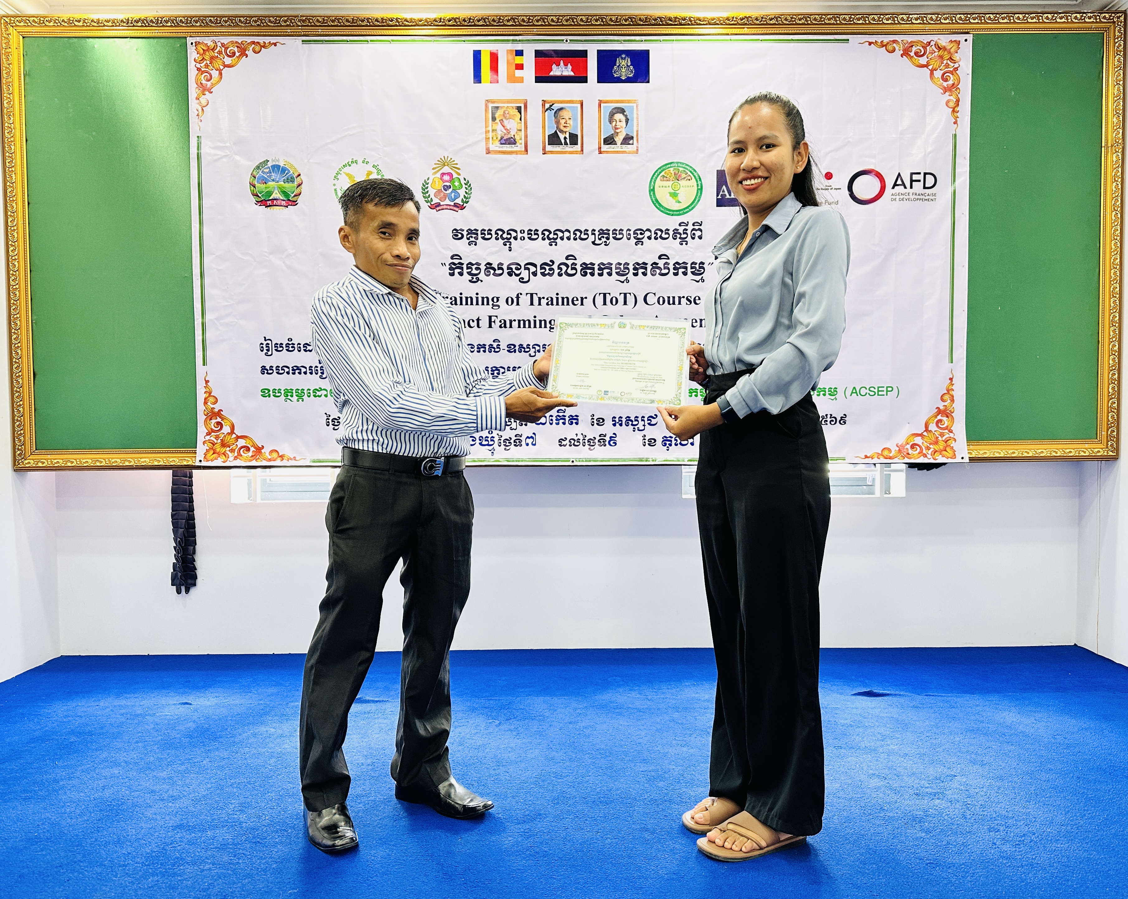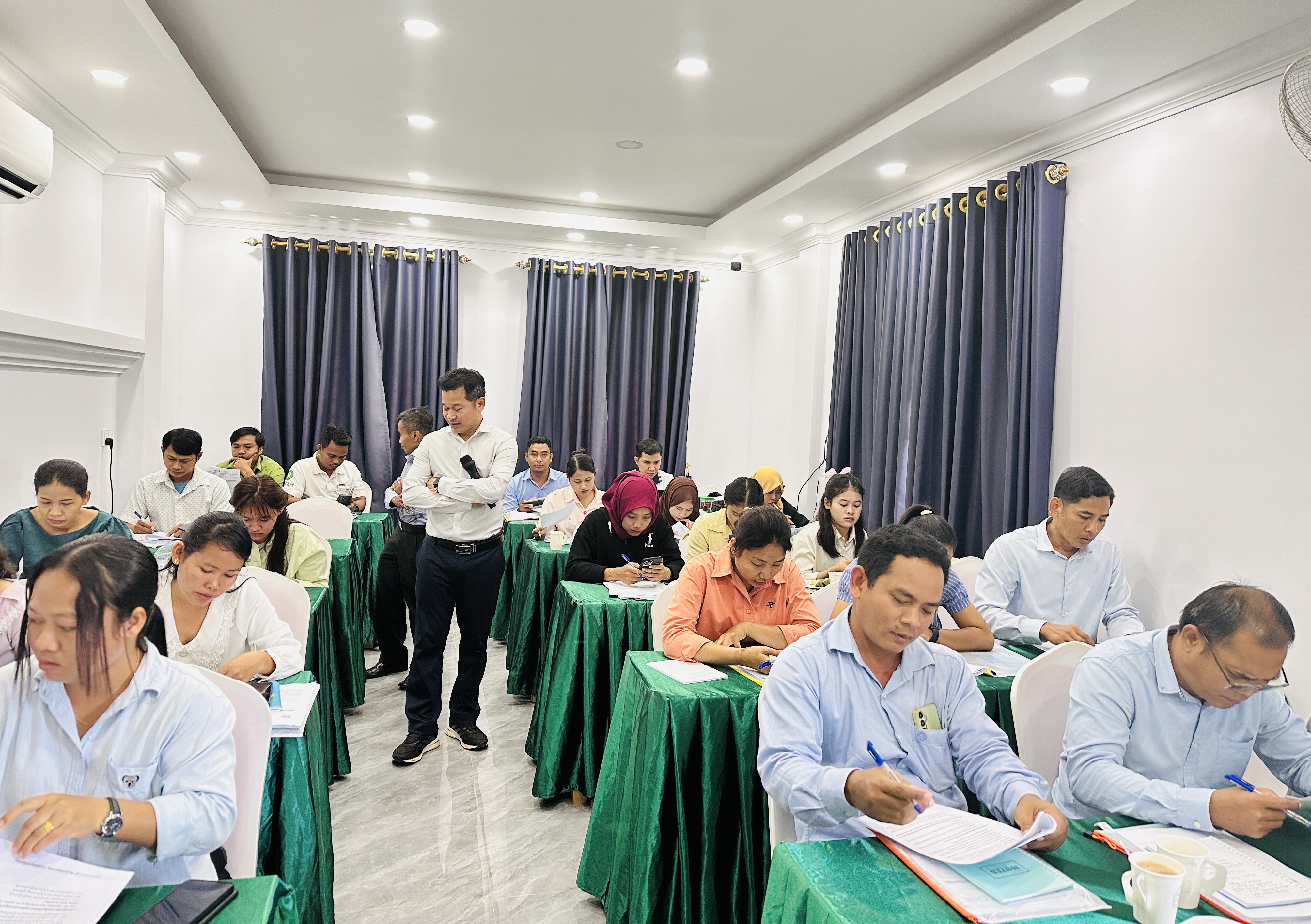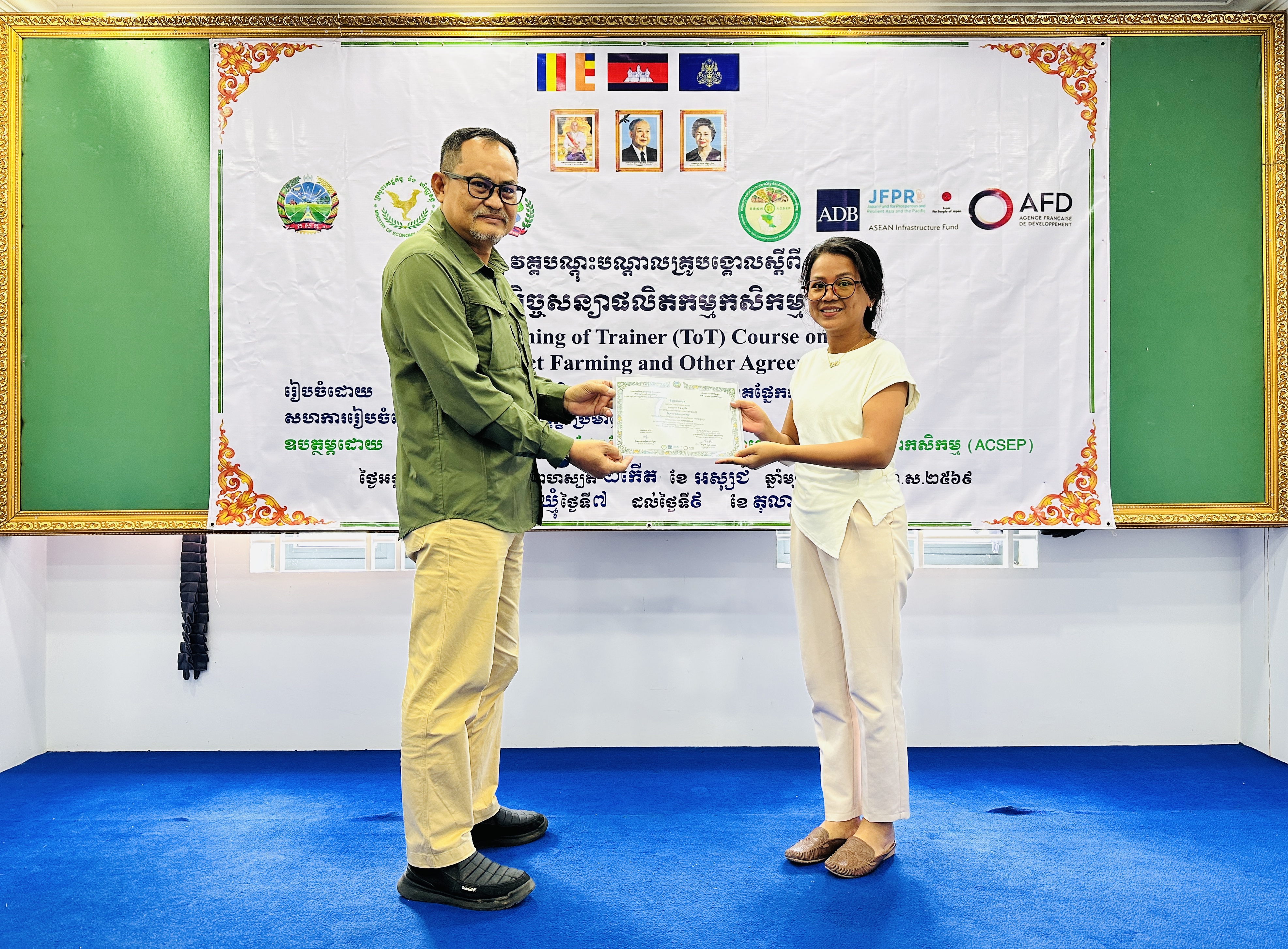 នៅថ្ងៃអង្គារ ១៥កើត ដល់ថ្ងៃព្រហស្បត្តិ៍ ២រោច ខែអស្សុជ ឆ្នាំម្សាញ់ សប្តស័ក ព.ស.២៥៦៩ ត្រូវនឹងថ្ងៃទី៧ ដល់ថ្ងៃទី៩ ខែតុលា ឆ្នាំ២០២៥ នៅទីរួមខេត្តត្បូងឃ្មុំ នាយកដ្ឋានកសិ-ឧស្សាហកម្ម ដែលជាអង្គភាពអនុវត្តគម្រោងនៃសមាសភាគផ្នែកកសិ-ឧស្សាហកម្មនៃគម្រោងប្រកួតប្រជែងខ្សែច្រវាក់តម្លៃ និងលើកកម្ពស់សុវត្ថិភាពកសិកម្ម (ACSEP) ដោយសហការជាមួយមន្ទីរកសិកម្ម រុក្ខាប្រមាញ់ និងនេសាទខេត្តត្បូងឃ្មុំ និងខេត្តកំពង់ចាម អង្គភាពអនុវត្តគម្រោងថ្នាក់ខេត្ត បានរៀបចំវគ្គបណ្តុះបណ្តាលគ្រូបង្គោលស្តីពី "កិច្ចសន្យាផលិតកម្មកសិកម្ម" ក្រោមអធិបតីភាពបណ្ឌិត ហង់ សុវណ្ណ អនុប្រធាននាយកដ្ឋានកសិ-ឧស្សាហកម្ម និងជាប្រធានសមាសភាគផ្នែកកសិ-ឧស្សាហកម្ម ដោយមានការអញ្ជើញចូលរួមពីមន្រ្តីគម្រោង ACSEP មន្រ្តីជំនាញពាក់ព័ន្ធថ្នាក់ខេត្ត ព្រមទាំងគ្រូឧទ្ទេស និងទីប្រឹក្សាបច្ចេកទេសផ្នែកអភិវឌ្ឍន៍កសិកម្ម និងផលិតកម្មកសិកម្មតាមកិច្ចសន្យា សរុបចំនួន ៣០រូប (ស្រ្តី ១០រូប)។