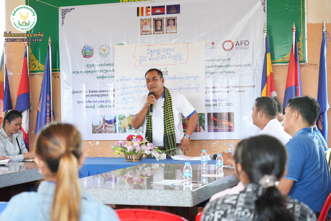 នៅថ្ងៃពុធ ៤កើត ដល់ថ្ងៃសុក្រ ៦កើត ខែភទ្របទ ឆ្នាំម្សាញ់ សប្ដស័ក ព.ស.២៥៦៩ ត្រូវនឹងថ្ងៃទី២៧ ដល់ថ្ងៃទី២៩ ខែសីហា គ.ស. ២០២៥ និយ័តករបរធនបាលកិច្ច (ន.ប.ធ.) ដែលជាអង្គភាពអនុវត្តគម្រោងប្រកួតប្រជែងខ្សែច្រវាក់តម្លៃ និងការលើកកម្ពស់សុវត្ថិភាពកសិកម្ម សមាសភាគទី១ (ACSEP-PIU1) ក្នុងក្របខណ្ឌក្រសួងសេដ្ឋកិច្ចនិងហិរញ្ញវត្ថុ បានរៀបចំសិក្ខាសាលាស្តីពី “ការផ្សព្វផ្សាយផលិតផល ឥណទានគម្រោង ACSEP” ក្រោមការដឹកនាំរបស់ លោក ប៉ូ សំអាង ប្រធាននាយកដ្ឋានស្រាវជ្រាវ បណ្តុះបណ្តាល និងសហប្រតិបត្តិការនៃ ន.ប.ធ. និងជាប្រធានផ្នែកប្រតិបត្តិការនៃគម្រោង ACSEP-PIU1 តំណាងរបស់ ឯកឧត្ដម សុខ ដារ៉ា អគ្គនាយកនៃ ន.ប.ធ. និងជាប្រធានគ្រប់គ្រងគម្រោង ACSEP-PIU1។