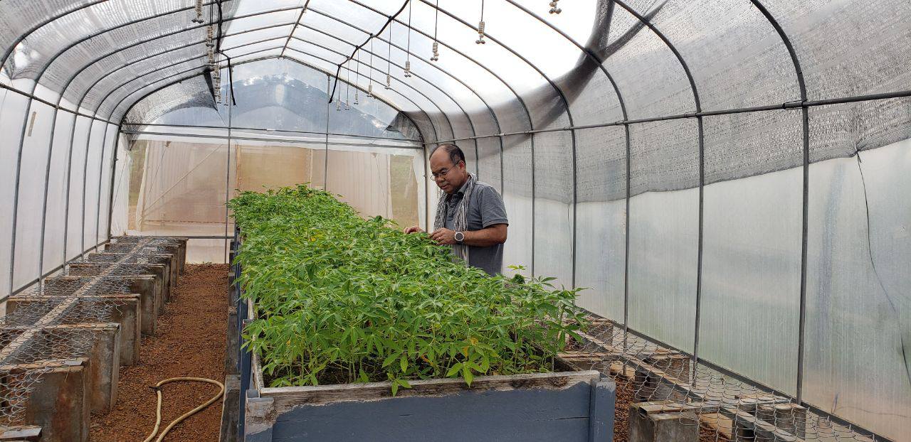 នៅថ្ងៃទី២៨ ខែកក្កដា ឆ្នាំ២០២៥ ខ្ញុំបាទបានដឹកនាំក្រុមការងារនាយកដ្ឋានដំណាំឧស្សាហ៍កម្មដែលមានរូបលោកធីវ វណ្ណធី ម៉េង ឬទ្ធា និងលោក ចិន សត្យា បានចុះដាំកូនដំឡូងមីស្អាតដែលបានបង្កាត់ពីជាលិកាកម្ម CARDI ជាប្រភេទពូជ TMEB-419 ធន់ទ្រាំនឹងជម្ងឺ CMD មានទិន្នផល ២៥-៣៥តោនក្នុង១ហិកតា ជាមួយនឹងបរិមាណម្សៅ ២០-២៦% និងបានរៀបបំពាក់ប្រពន្ធ័ស្រោចស្រពដោយជោគជ័យលើផ្ទៃដីជាង ០,៦០ហិកតា សំរាប់ការដាំកូនដំឡូងមីស្អាត ៨០០០កូន ដែលទទួលបាន CARDI ដើម្បីដាំចែកចាយដល់សហគមន៍ក្នងខេត្តគោលដៅទាំង៦របស់គម្រោង។ ជាលទ្ធផលទទួលបានដូចខាងក្រោមគឺ: