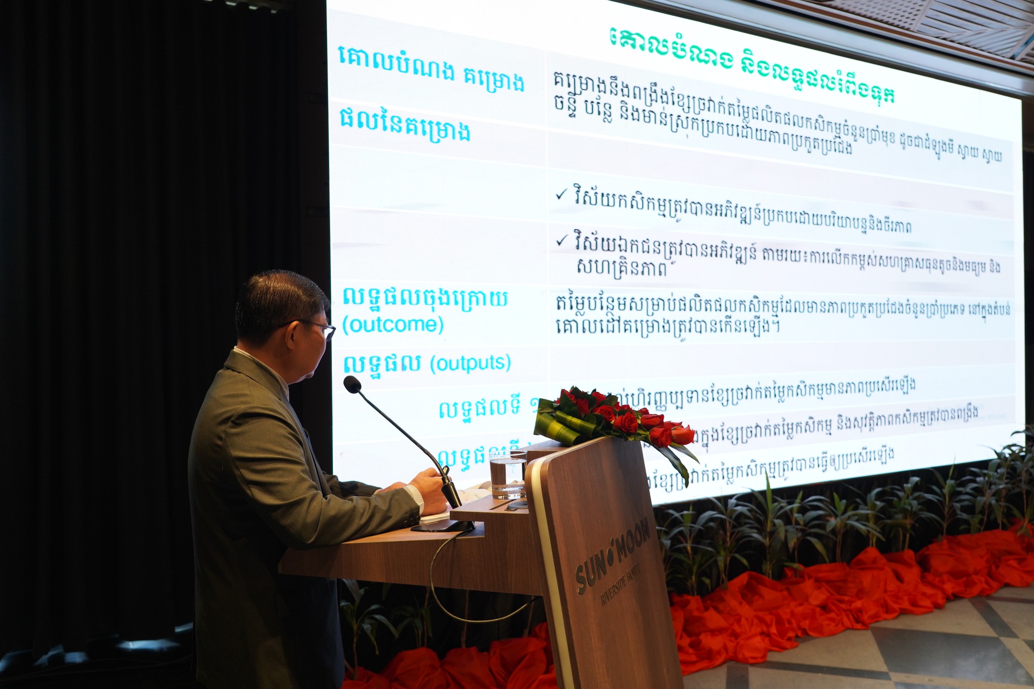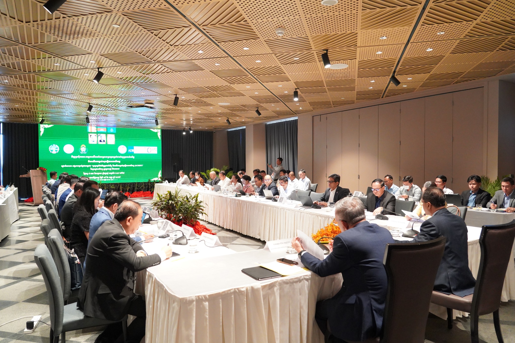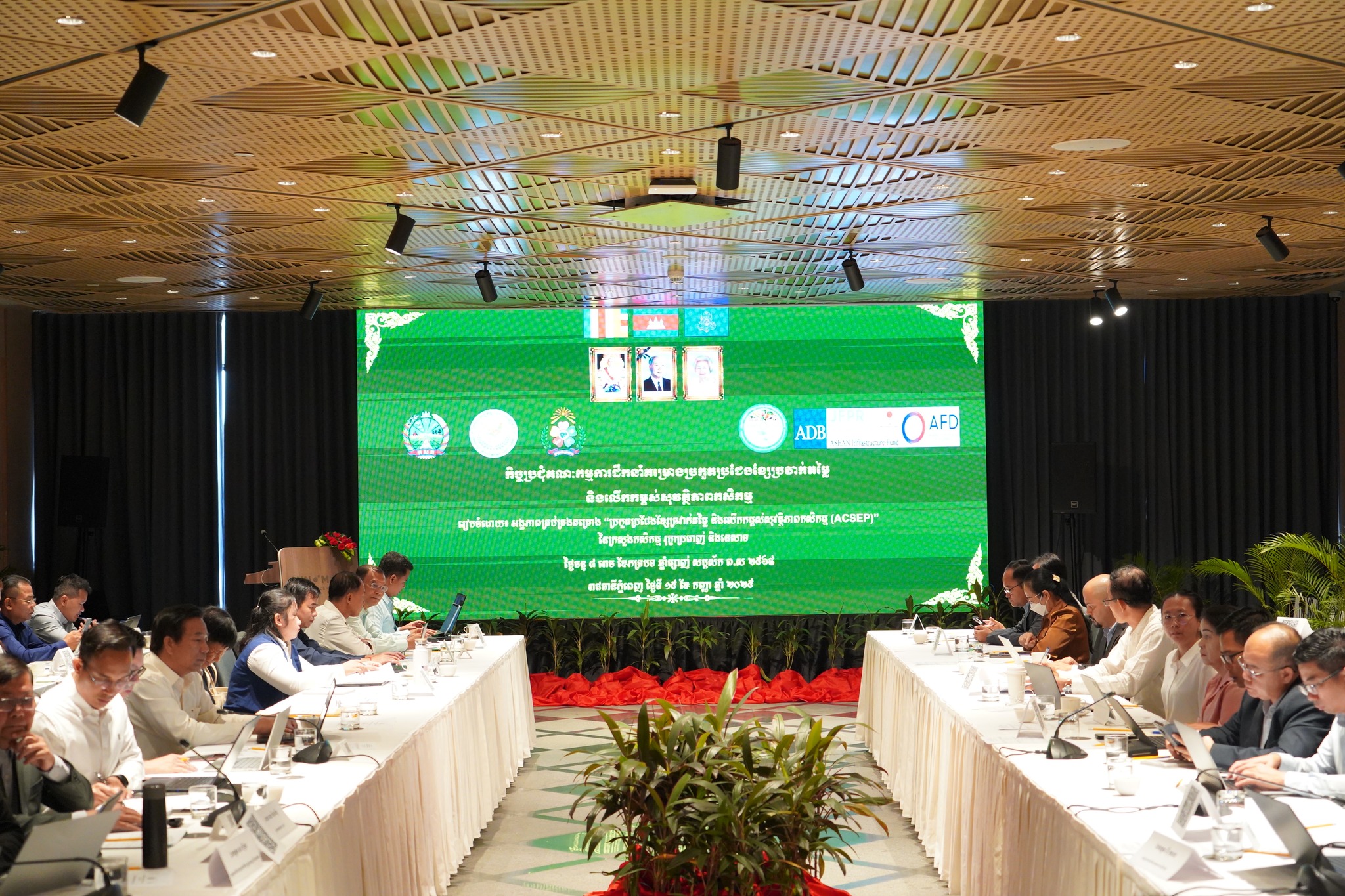 នៅថ្ងៃចន្ទ ៨រោច ខែភទ្របទ ឆ្នាំម្សាញ់ សប្តស័ក ព.ស ២៥៦៩ ត្រូវនឹងថ្ងៃទី១៥ ខែកញ្ញា ឆ្នាំ២០២៥ នៅសណ្ឋាគារ Sun & Moon Riverside អង្គភាពគ្រប់គ្រងគម្រោងបានរៀបចំកិច្ចប្រជុំ“គណ:កម្មការដឹកនាំគម្រោងប្រកួតប្រជែងខ្សែច្រវាក់តម្លៃ និងលើកកម្ពស់ សុវត្ថិភាពកសិកម្ម (ACSEP) ក្រោមអធិបតីភាពឯកឧត្ដមបណ្ឌិត ហ៊ាន វណ្ណហន រដ្ឋលេខាធិការ ក្រសួងកសិកម្ម រុក្ខាប្រមាញ់ និងនេសាទ និងជាសហប្រធាន ជាមួយនិងឯកឧត្តម ប៉ែន ធីរុង្គ រដ្ឋលេខាធិការក្រសួងសេដ្ឋកិច្ច និងហិរញ្ញវត្ថុ និងជាសហប្រធាន។ កិច្ចប្រជុំមានការអញ្ជើញចូលរួមពី ឯកឧត្តមបណ្ឌិត សរ ចិត្រា អគ្គលេខាធិការក្រសួងកសិកម្ម រុក្ខាប្រមាញ់ និងនេសាទ និងជានាយកគម្រោ រួមជាមួយនឹង ឯកឧត្តម លោកជំទាវ លោក លោកស្រី ជាសមាជិក សមាជិកាគណ:កម្មការដឹកនាំគម្រោង។ កិច្ចប្រជុំក៏មានការចូលរួមពីឯកឧត្តម លោកជំទាវ លោក លោកស្រី ជាអង្គភាពអនុវត្តគម្រោងនៃក្រសួងសេដ្ឋកិច្ច និងហិរញ្ញវត្ថុ ក្រសួងកសិកម្ម រុក្ខាប្រមាញ់ និងហិរញ្ញវត្ថុ និងក្រសួងអភិវឌ្ឍន៍ជនបទ តំណាងធនាគារដៃគូទាំងពីរ អគ្គនាយកដ្ឋានសហប្រតិបត្តិការអន្តរជាតិនិងគ្រប់គ្រងបំណុលនៃក្រសួងសេដ្ឋកិច្ច និងហិរញ្ញវត្ថុ ក្រុមទីប្រឹក្សាគាំទ្រការអនុវត្តគម្រោង(Project Implementing Consultant) ក្រុមទីប្រឹក្សាគាំទ្របច្ចេកទេស AVCC និងអង្គភាពអនុវត្តគម្រោងនៃមន្ទីរកសិកម្ម រុក្ខាប្រមាញ់ និងនេសាទខេត្តគោលដៅ។ កិច្ចប្រជុំមានគោលបំណង ១)ពិនិត្យលទ្ធផលនៃការអនុវត្តសកម្មភាពក្នុងឆ្នាំ២០២៥ កន្លងមក និងពិភាក្សាអំពីបញ្ហាប្រឈមនានា និងលើកជាដំណោះស្រាយសំដៅលើកកម្ពស់ការអនុវត្តសកម្មភាពប្រកបដោយប្រសិទ្ធផល និងប្រសិទ្ធភាព។ ២)ពិភាក្សាការរៀបចំផែនការសកម្មភាព និងថវិកាសម្រាប់ឆ្នាំ ២០២៦ ព្រមទាំងផ្តល់ការឯកភាព។