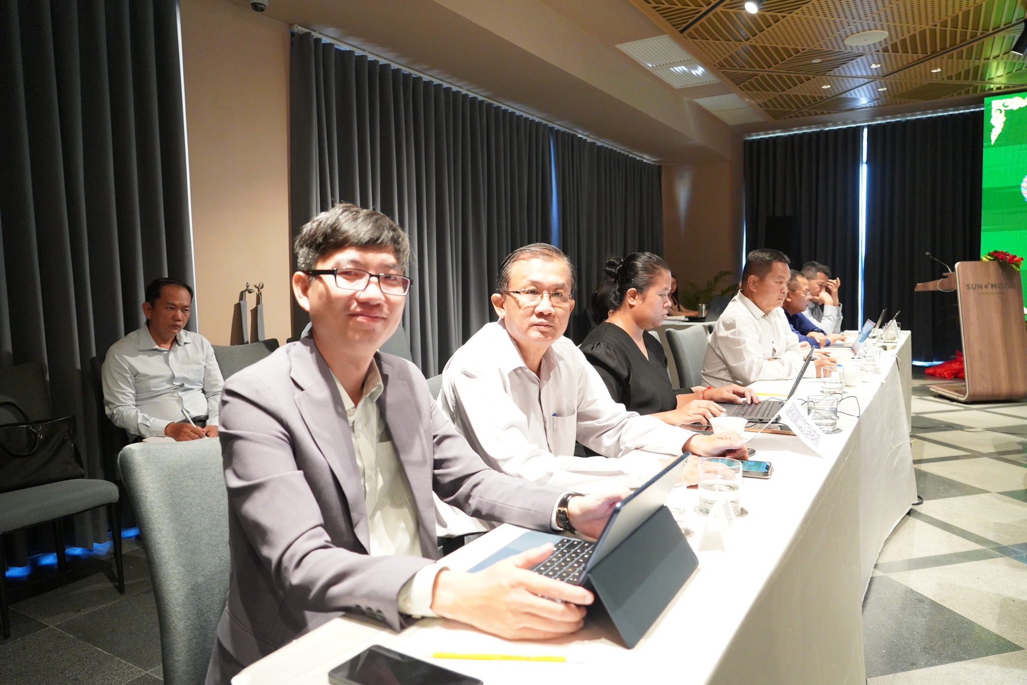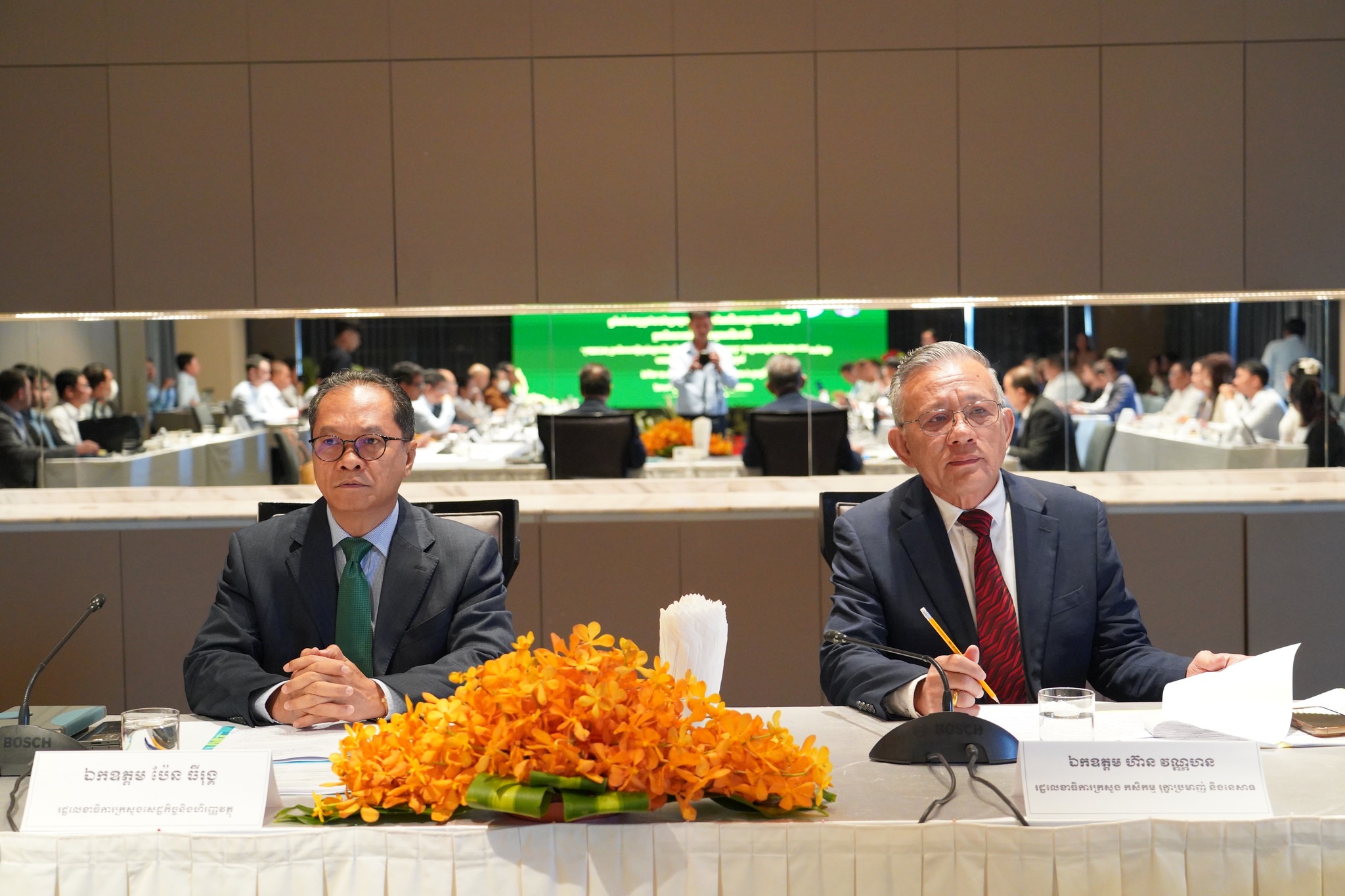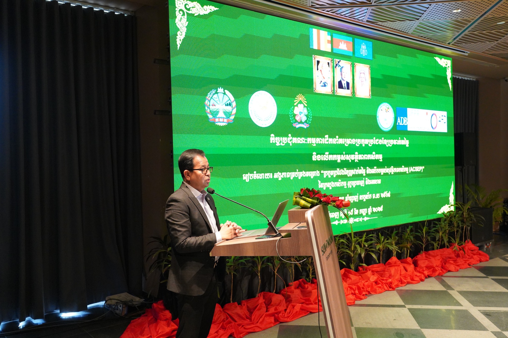 នៅថ្ងៃចន្ទ ៨រោច ខែភទ្របទ ឆ្នាំម្សាញ់ សប្តស័ក ព.ស ២៥៦៩ ត្រូវនឹងថ្ងៃទី១៥ ខែកញ្ញា ឆ្នាំ២០២៥ នៅសណ្ឋាគារ Sun & Moon Riverside អង្គភាពគ្រប់គ្រងគម្រោងបានរៀបចំកិច្ចប្រជុំ“គណ:កម្មការដឹកនាំគម្រោងប្រកួតប្រជែងខ្សែច្រវាក់តម្លៃ និងលើកកម្ពស់ សុវត្ថិភាពកសិកម្ម (ACSEP) ក្រោមអធិបតីភាពឯកឧត្ដមបណ្ឌិត ហ៊ាន វណ្ណហន រដ្ឋលេខាធិការ ក្រសួងកសិកម្ម រុក្ខាប្រមាញ់ និងនេសាទ និងជាសហប្រធាន ជាមួយនិងឯកឧត្តម ប៉ែន ធីរុង្គ រដ្ឋលេខាធិការក្រសួងសេដ្ឋកិច្ច និងហិរញ្ញវត្ថុ និងជាសហប្រធាន។ កិច្ចប្រជុំមានការអញ្ជើញចូលរួមពី ឯកឧត្តមបណ្ឌិត សរ ចិត្រា អគ្គលេខាធិការក្រសួងកសិកម្ម រុក្ខាប្រមាញ់ និងនេសាទ និងជានាយកគម្រោ រួមជាមួយនឹង ឯកឧត្តម លោកជំទាវ លោក លោកស្រី ជាសមាជិក សមាជិកាគណ:កម្មការដឹកនាំគម្រោង។ កិច្ចប្រជុំក៏មានការចូលរួមពីឯកឧត្តម លោកជំទាវ លោក លោកស្រី ជាអង្គភាពអនុវត្តគម្រោងនៃក្រសួងសេដ្ឋកិច្ច និងហិរញ្ញវត្ថុ ក្រសួងកសិកម្ម រុក្ខាប្រមាញ់ និងហិរញ្ញវត្ថុ និងក្រសួងអភិវឌ្ឍន៍ជនបទ តំណាងធនាគារដៃគូទាំងពីរ អគ្គនាយកដ្ឋានសហប្រតិបត្តិការអន្តរជាតិនិងគ្រប់គ្រងបំណុលនៃក្រសួងសេដ្ឋកិច្ច និងហិរញ្ញវត្ថុ ក្រុមទីប្រឹក្សាគាំទ្រការអនុវត្តគម្រោង(Project Implementing Consultant) ក្រុមទីប្រឹក្សាគាំទ្របច្ចេកទេស AVCC និងអង្គភាពអនុវត្តគម្រោងនៃមន្ទីរកសិកម្ម រុក្ខាប្រមាញ់ និងនេសាទខេត្តគោលដៅ។ កិច្ចប្រជុំមានគោលបំណង ១)ពិនិត្យលទ្ធផលនៃការអនុវត្តសកម្មភាពក្នុងឆ្នាំ២០២៥ កន្លងមក និងពិភាក្សាអំពីបញ្ហាប្រឈមនានា និងលើកជាដំណោះស្រាយសំដៅលើកកម្ពស់ការអនុវត្តសកម្មភាពប្រកបដោយប្រសិទ្ធផល និងប្រសិទ្ធភាព។ ២)ពិភាក្សាការរៀបចំផែនការសកម្មភាព និងថវិកាសម្រាប់ឆ្នាំ ២០២៦ ព្រមទាំងផ្តល់ការឯកភាព។