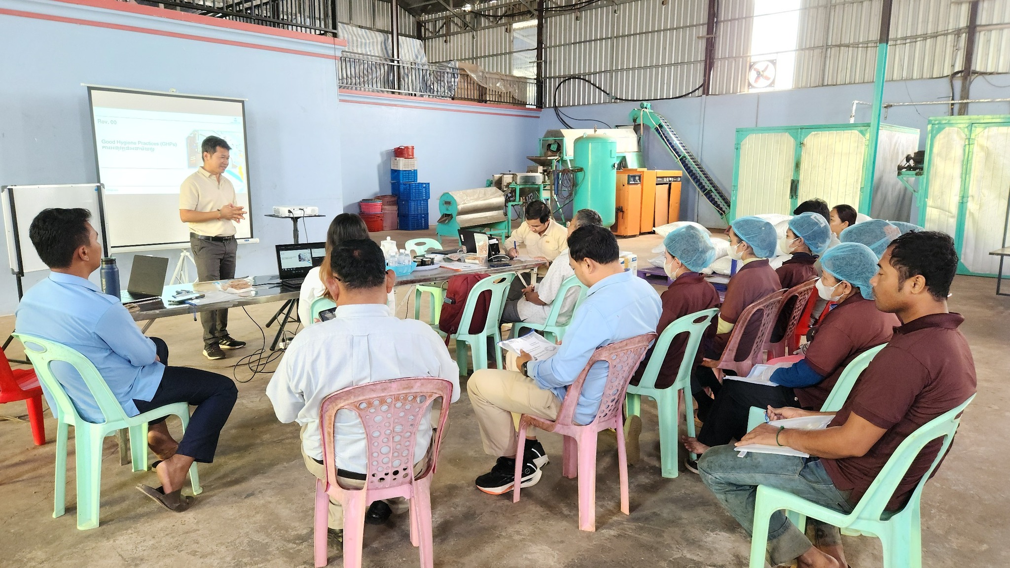 នៅថ្ងៃអង្គារ ១១រោច ដល់ថ្ងៃព្រហស្បត្តិ៍ ១៣រោច ខែមិគសិរ ឆ្នាំម្សាញ់ សប្តស័ក ព.ស.២៥៦៩ ត្រូវនឹងថ្ងៃទី១៦ ដល់ថ្ងៃទី១៨ ខែធ្នូ ឆ្នាំ២០២៥ នាយកដ្ឋានកសិ-ឧស្សាហកម្ម ដែលជាអង្គភាពអនុវត្តគម្រោងនៃសមាសភាគផ្នែកកសិ-ឧស្សាហកម្មនៃគម្រោងប្រកួតប្រជែងខ្សែច្រវាក់តម្លៃ និងលើកកម្ពស់សុវត្ថិភាពកសិកម្ម (ACSEP) ដោយសហការជាមួយមន្ទីរកសិកម្ម រុក្ខាប្រមាញ់ និងនេសាទខេត្តកំពង់ចាម បានចុះបង្ហាត់បង្រៀនដល់ សិប្បកម្មកែច្នៃគ្រាប់ស្វាយចន្ទីឡឹង ម៉ានុត ដើម្បីទទួលបានវិញ្ញាបនបត្រសុវត្ថិភាពចំណីអាហារ (GHP/HACCP) ដោយមានការអញ្ជើញចូលរួមពីមន្រ្តីគម្រោង ACSEP នៃសមាភាគកសិ-ឧស្សាហកម្ម អង្គភាពអនុវត្តគម្រោងនៃមន្ទីរកសិកម្ម រុក្ខាប្រមាញ់ និងនេសាទខេត្តកំពង់ចាម ព្រមទាំងទីប្រឹក្សាគម្រោង (AVCC) សរុបចំនួន ២៤រូប (ស្រ្តី ១៤រូប)។