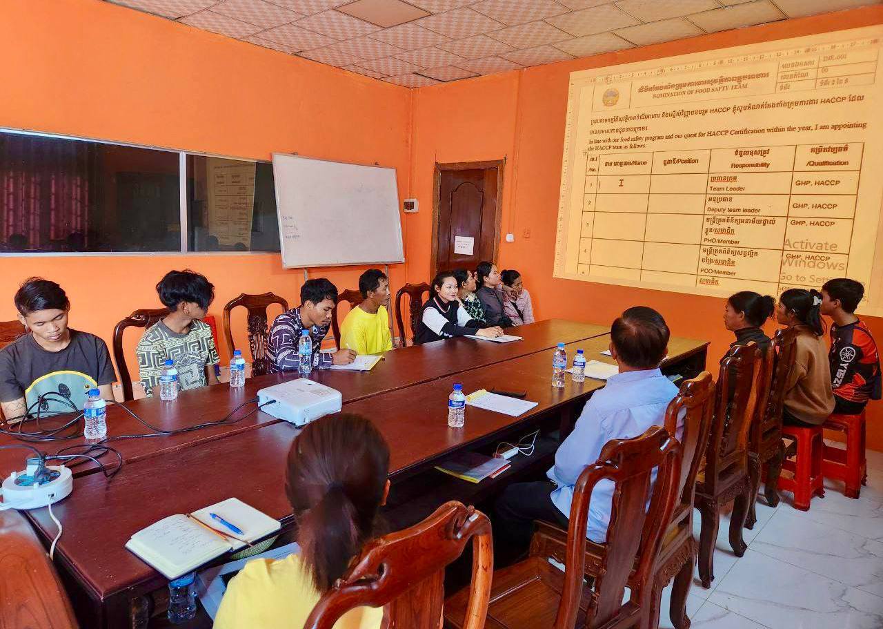 នៅថ្ងៃអង្គារ ៨រោច ដល់ថ្ងៃព្រហស្បត្តិ៍ ១០រោច ខែមាឃ ឆ្នាំម្សាញ់ សប្តស័ក ព.ស.២៥៦៩ ត្រូវនឹងថ្ងៃទី១០ ដល់ថ្ងៃទី១២ ខែកុម្ភៈ ឆ្នាំ២០២៦ នាយកដ្ឋានកសិ-ឧស្សាហកម្ម ដែលជាអង្គភាពអនុវត្តគម្រោងនៃសមាសភាគផ្នែកកសិ-ឧស្សាហកម្ម នៃគម្រោងប្រកួតប្រជែងខ្សែច្រវាក់តម្លៃ និងលើកកម្ពស់សុវត្ថិភាពកសិកម្ម (ACSEP) ដោយសហការជាមួយមន្ទីរកសិកម្ម រុក្ខាប្រមាញ់ និងនេសាទខេត្តព្រះវិហារ បានចុះបង្ហាត់បង្រៀនដល់រោងចក្រកែច្នៃគ្រាប់ស្វាយចន្ទី សានតាណាអាហ្រ្គូប្រូដាក់ ដើម្បីរៀបចំស្នេីរសុំវិញ្ញាបនបត្រសុវត្ថិភាពចំណីអាហារ GHP ឬ HACCP ដោយមានការអញ្ជើញចូលរួមពីមន្រ្តីគម្រោងផ្នែកកសិ-ឧស្សាហកម្ម មន្រ្តីអនុវត្តគម្រោងនៃមន្ទីរកសិកម្ម រុក្ខាប្រមាញ់ និងនេសាទខេត្តព្រះវិហារ ព្រមទាំងទីប្រឹក្សាជំនាញសុវត្ថិភាពចំណីអាហារ សរុបចំនួន ២៤រូប (ស្រ្តី ០៩រូប)។