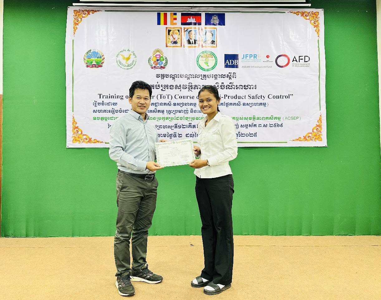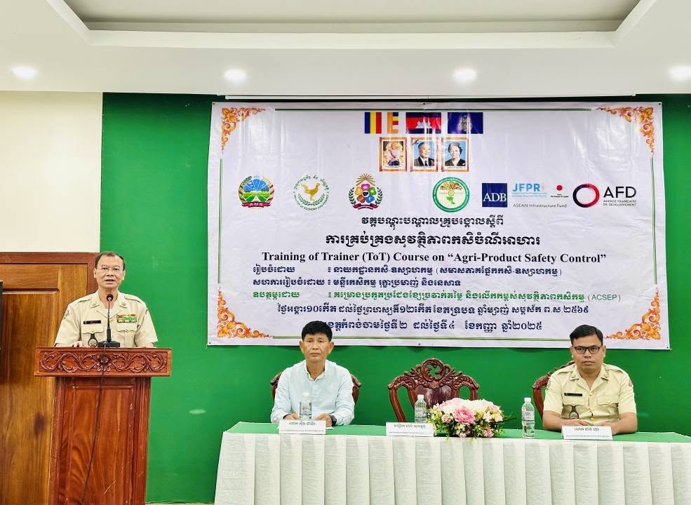 នៅថ្ងៃអង្គារ ១០កើត ដល់ថ្ងៃព្រហស្បត្តិ៍ ១២កើត ខែភទ្របទ ឆ្នាំម្សាញ់ សប្តស័ក ព.ស.២៥៦៩ ត្រូវនឹងថ្ងៃទី២ ដល់ថ្ងៃទី៤ ខែកញ្ញា ឆ្នាំ២០២៥ នៅទីរួមខេត្តកំពង់ចាម នាយកដ្ឋានកសិ-ឧស្សាហកម្ម ដែលជាអង្គភាពអនុវត្តគម្រោងនៃសមាសភាគផ្នែកកសិ-ឧស្សាហកម្មនៃគម្រោងប្រកួតប្រជែងខ្សែច្រវាក់តម្លៃ និងលើកកម្ពស់សុវត្ថិភាពកសិកម្ម (ACSEP) ដោយសហការជាមួយមន្ទីរកសិកម្ម រុក្ខាប្រមាញ់ និងនេសាទខេត្តកំពង់ចាម និងខេត្តត្បូងឃ្មុំ អង្គភាពអនុវត្តគម្រោងថ្នាក់ខេត្ត បានរៀបចំវគ្គបណ្តុះបណ្តាលគ្រូបង្គោលស្តីពី "ការគ្រប់គ្រងសុវត្ថិភាពកសិចំណីអាហារដល់មន្រ្តីជំនាញពាក់ព័ន្ធថ្នាក់ខេត្តនៃគម្រោង ACSEP" ក្រោមអធិបតីភាពបណ្ឌិត ហង់ សុវណ្ណ អនុប្រធាននាយកដ្ឋានកសិ-ឧស្សាហកម្ម និងជាប្រធានសមាសភាគផ្នែកកសិ-ឧស្សាហកម្ម តំណាងដ៏ខ្ពង់ខ្ពស់ ឯកឧត្តមបណ្ឌិត សរ ចិត្រា អគ្គលេខាធិការក្រសួង កសិកម្ម រុក្ខាប្រមាញ់ និងនេសាទ និងជានាយកគម្រោង ACSEP។
