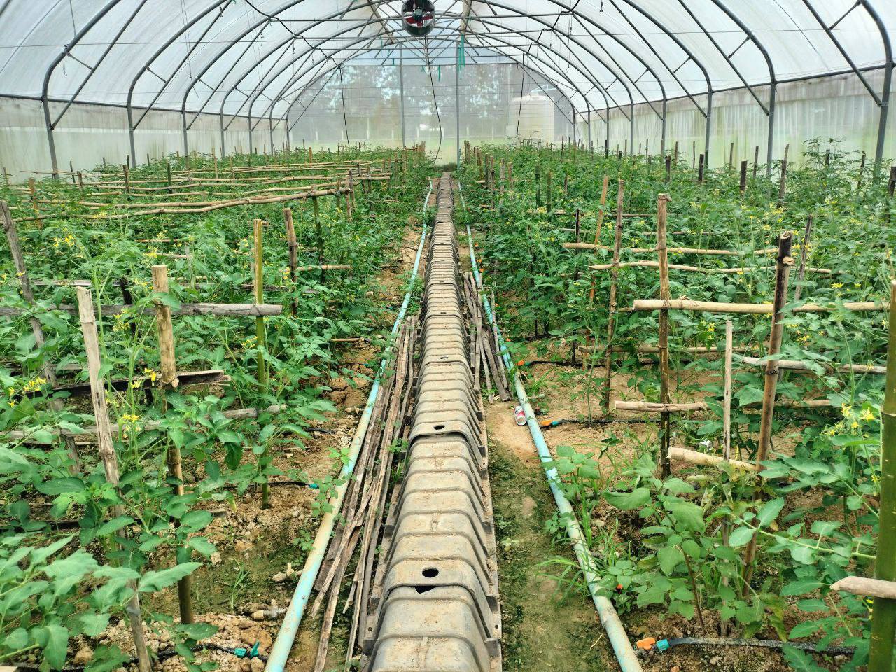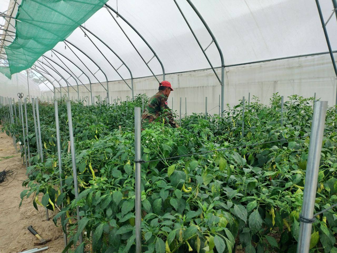 - បានដាំបង្គោលចងខ្សែ ដាក់ទ្រើងប៉េងប៉ោះឆឺរី និងស្រឡាយម្ទេស