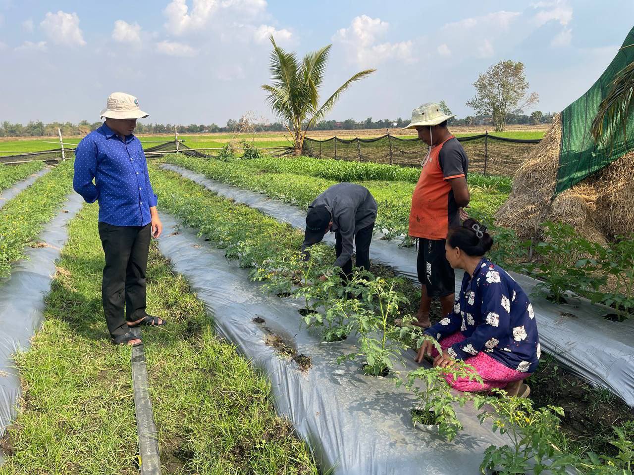 - ជាលទ្ធផល បន្ទាប់ពីក្រុមការងារបានចុះពិនិត្យពិសោធន៍ក្នុងខេត្តទាំងពីរ ឃើញថាពិសោធន៍ពហុកន្លែងលើដំណាំម្ទេស និងការដាំបង្ហាញពូជប៉េងប៉ោះឆឺរីកំពុងដំណើរការ ដែលស្ថិតក្នុងដំណាក់កាលចេញផ្កា និងផ្លែ។ សម្រាប់ការដាំបង្ហាញពូជប៉េងប៉ោះឆឺរី ដោយតាមការស្ទាបស្ទង់មតិរបស់កសិករ គឺពេញចិត្តនឹងពូជប៉េងប៉ោះឆឺរី ដែលមានការដុះលូតលាស់ល្អ ចេញផ្កាច្រើន ទិន្នផលខ្ពស់ និងមានរសជាតិឆ្ងាញ់។