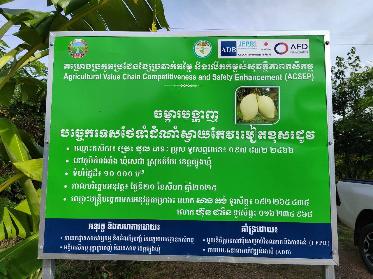 នៅថ្ងៃទី១១ ខែវិច្ឆិកា ឆ្នាំ២០២៥ ក្រុមការងារនៃអង្គភាពគ្រប់គ្រងគម្រោងប្រកួតប្រជែងខ្សែច្រវាក់តម្លៃកសិកម្ម និងលើកកម្ពស់សុវត្ថិភាពកសិកម្ម បានចូលរួមអមដំណើរក្រុមបេសកកម្មនៃធនាគារអភិវឌ្ឍន៍អាស៊ី (ADB) ដែលមានលោក ឡុង ពិសិដ្ឋ មន្រ្តីជាន់ខ្ពស់គ្រប់គ្រងគម្រោងជាអ្នកដឹកនាំ និងមានការអញ្ជើញចូលរួមពីភ្នាក់ងារអនុវត្តគម្រោងនៃសមាសភាគទី១ ក្រសួងសេដ្ឋកិច្ច និងហិរញ្ញវត្ថុ សមាសភាគទី២ ក្រសួងកសិកម្ម រុក្ខាប្រមាញ់ និងនេសាទ សមាសភាគទី ៣ ក្រសួងអភិវឌ្ឍន៍ជនបទ ព្រមទាំងទីប្រឹក្សាអនុវត្តគម្រោង (PIC) ទីប្រឹក្សាខ្សែច្រវាក់តម្លៃកសិកម្ម (AVCC) និងក្រុមការងារនៃមន្ទីរកសិកម្ម រុក្ខាប្រមាញ់ និងនេសាទខេត្ត ។ ក្រុមបេសកកម្ម បានចុះពិនិត្យការអនុវត្តគម្រោងនៅក្នុងខេត្តត្បូងឃ្មុំចំនួន ៣ទីតាំងដែលមានដូចជា៖