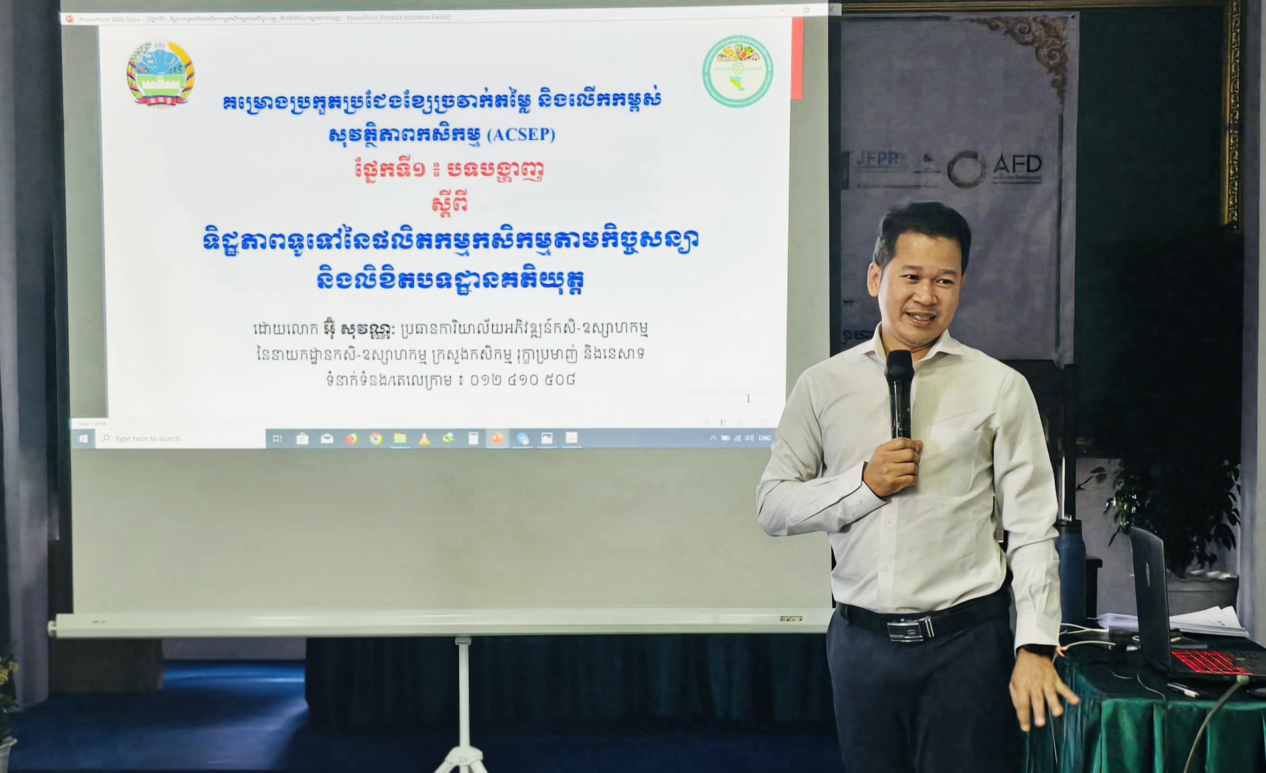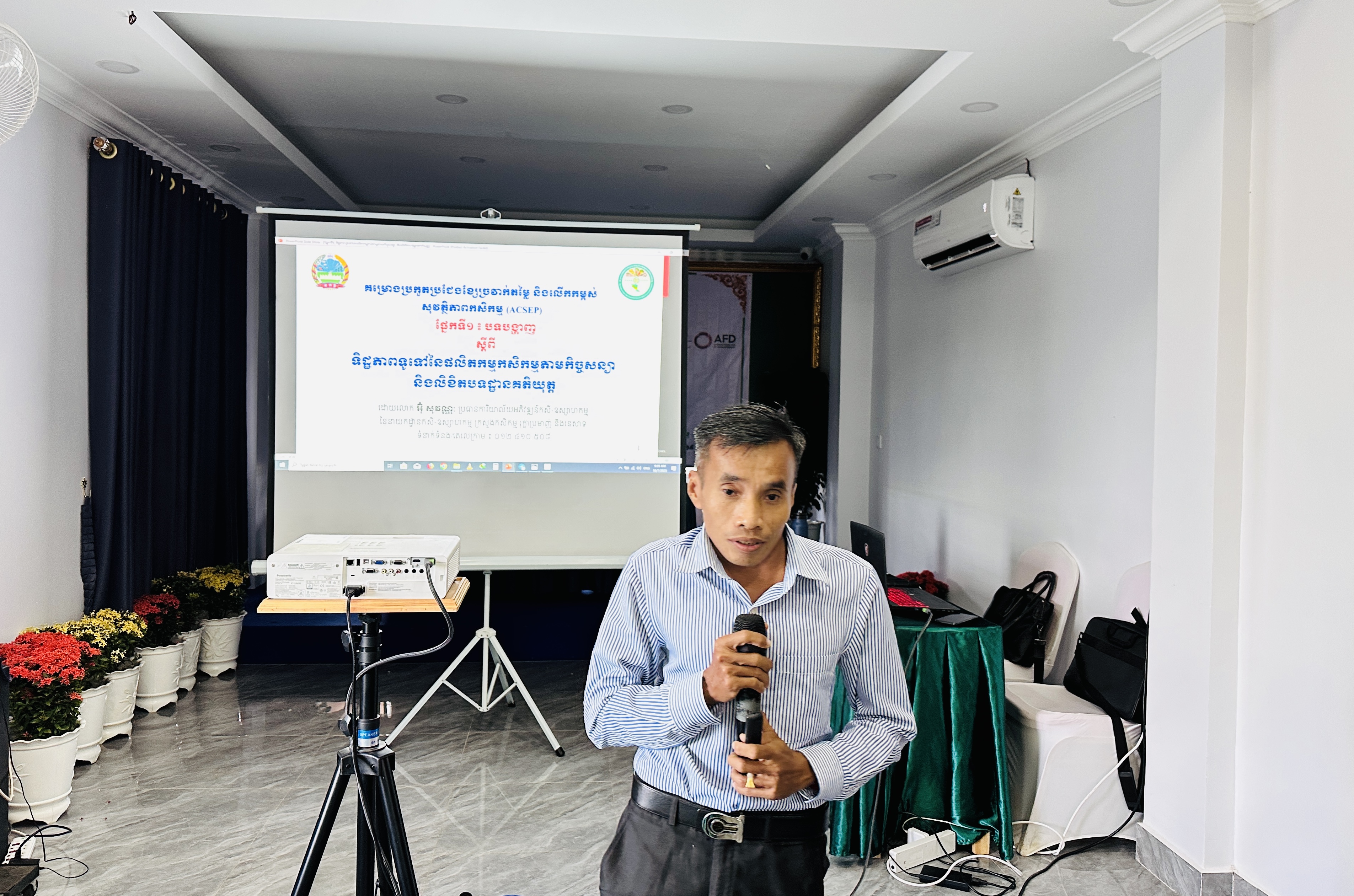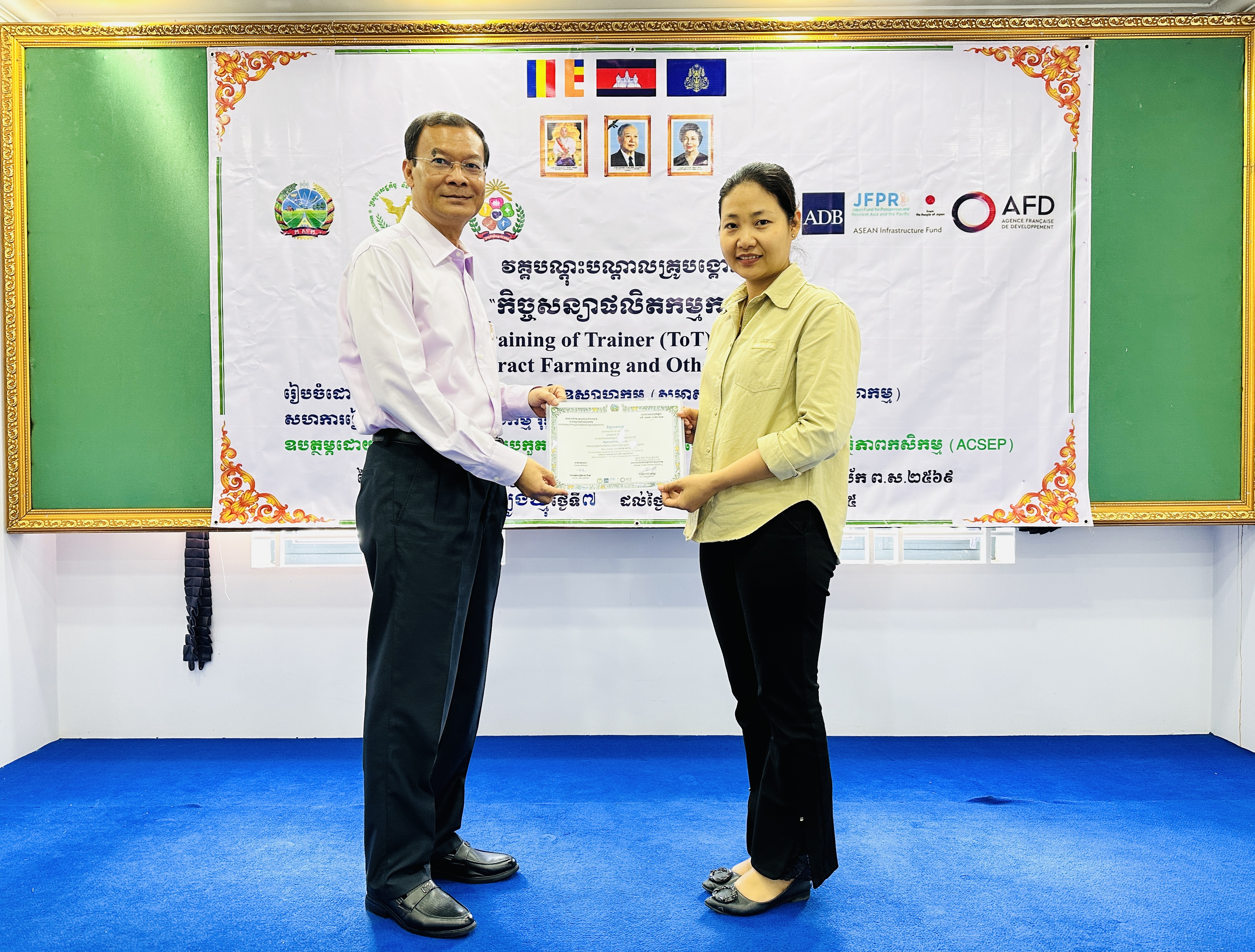 ១. ពង្រឹងការយល់ដឹងអំពីផលិតកម្មកសិកម្មតាមកិច្ចសន្យា លិខិតបទដ្ឋានគតិយុត្ត គោលការណ៍ណែនាំដែលបង្ហាញអំពីសិទ្ធិ និងកាតព្វកិច្ចរវាងភាគីអ្នកផលិត និងភាគីអ្នកទិញ ការកំណត់បរិមាណ គុណភាព និងតម្លៃនៃផលិតផលកសិកម្ម ក្រោមយន្តការអនុវត្តផលិតកម្មកសិកម្មតាមកិច្ចសន្យាដល់មន្រ្តីក្នុងគម្រោង ACSEP និងមន្រ្តីជំនាញពាក់ព័ន្ធថ្នាក់ខេត្ត។