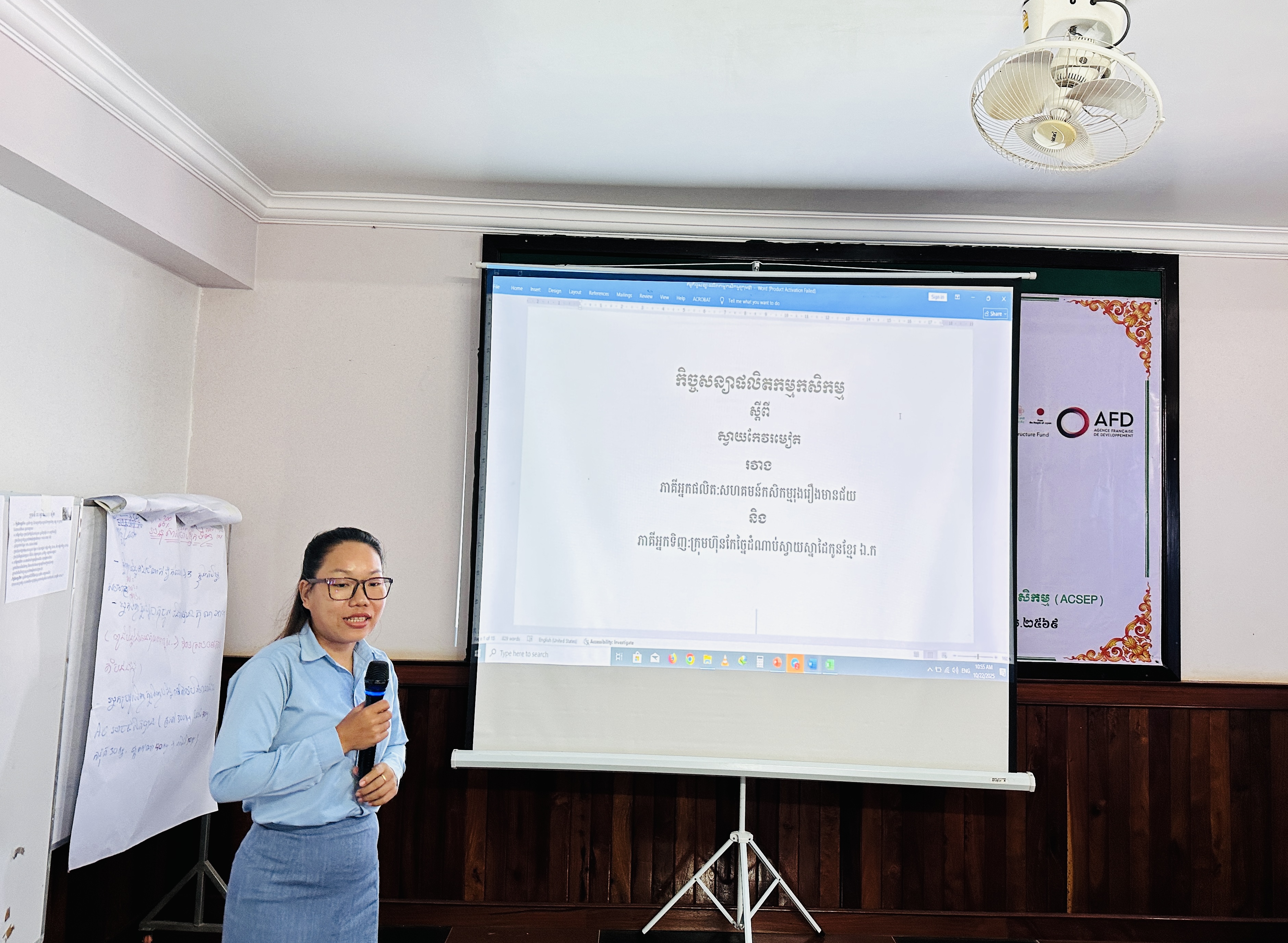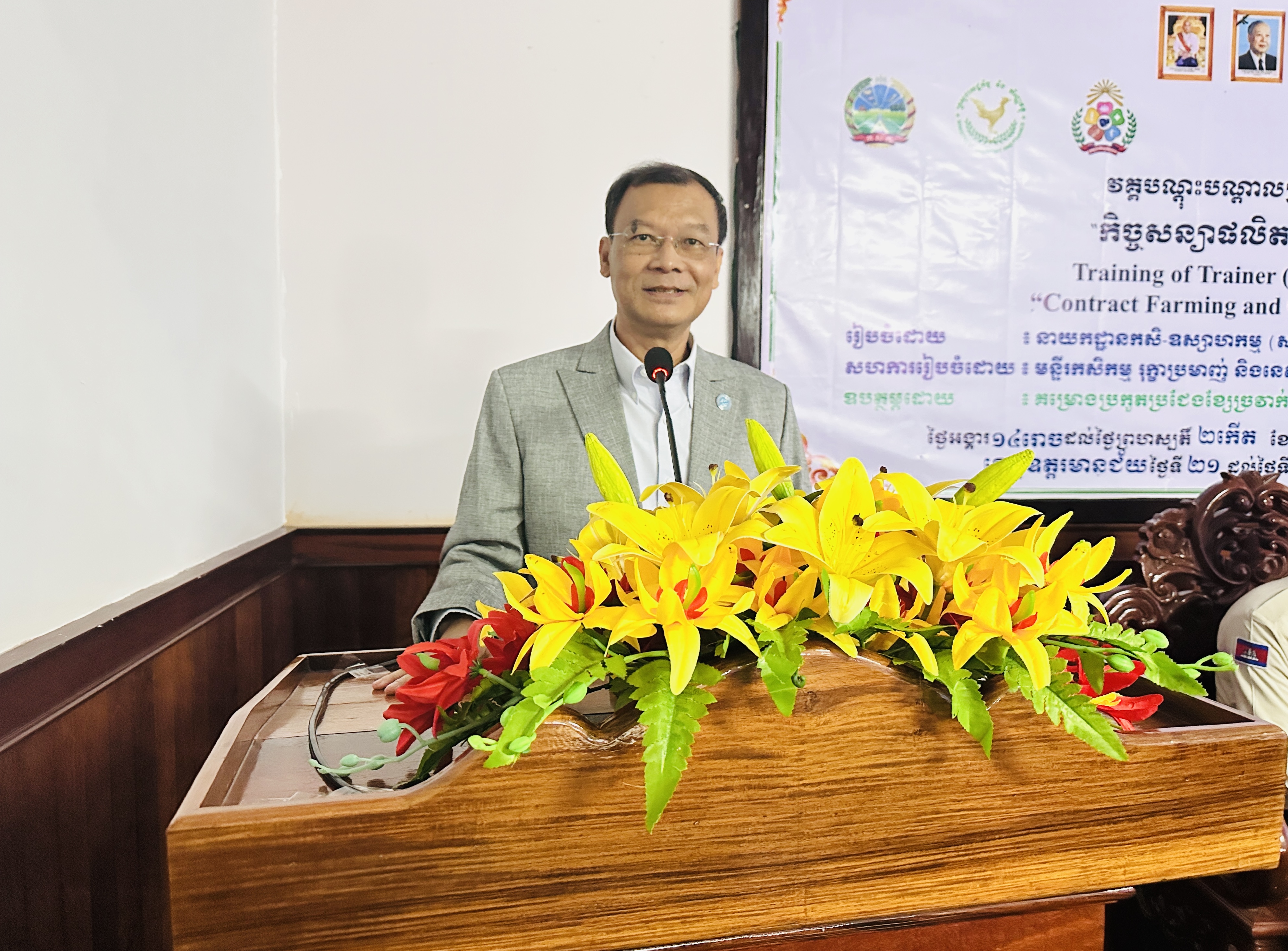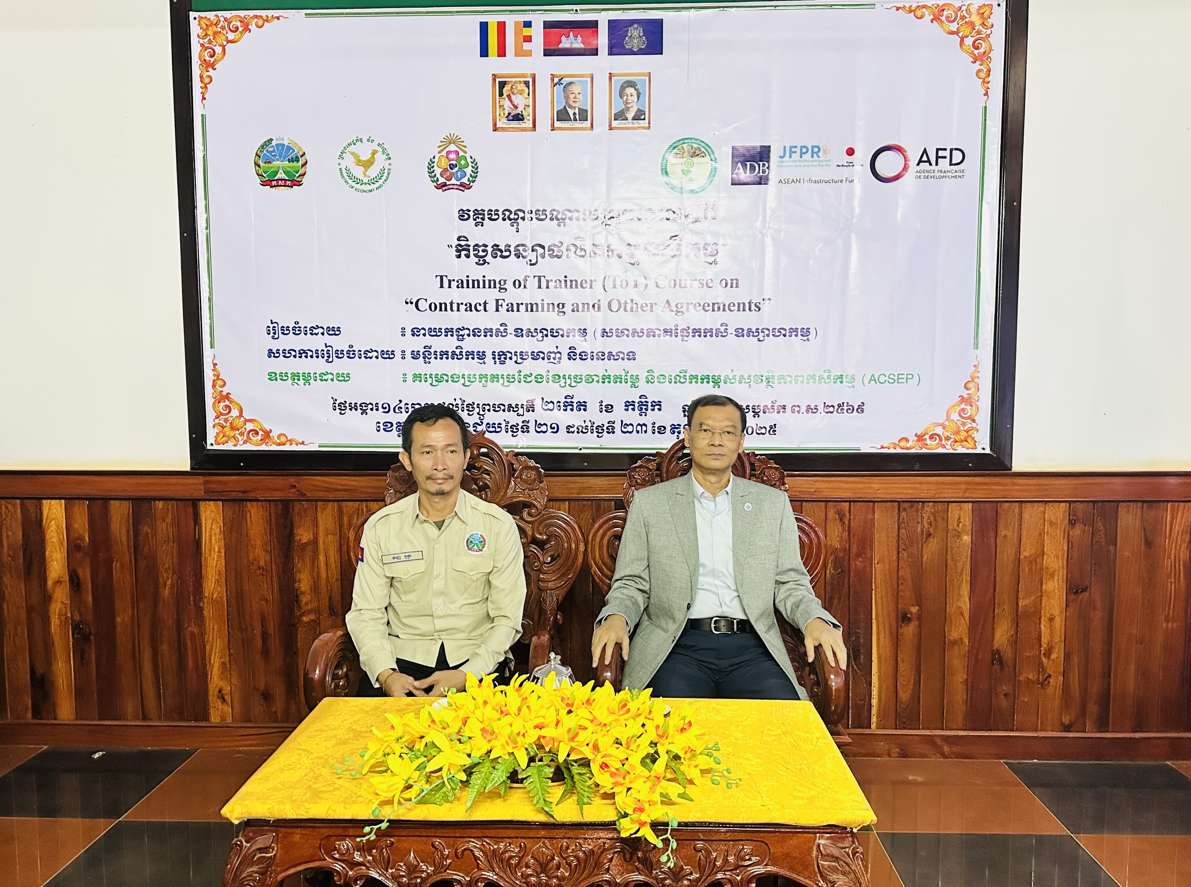 នៅថ្ងៃអង្គារ ១៤រោច ដល់ថ្ងៃព្រហស្បត្តិ៍ ២កើត ខែកក្តិត ឆ្នាំម្សាញ់ សប្តស័ក ព.ស.២៥៦៩ ត្រូវនឹងថ្ងៃទី២១ ដល់ថ្ងៃទី២៣ខែតុលា ឆ្នាំ២០២៥ នៅទីរួមខេត្តឧត្តរមានជ័យ នាយកដ្ឋានកសិ-ឧស្សាហកម្ម ដែលជាអង្គភាពអនុវត្តគម្រោងនៃសមាសភាគផ្នែកកសិ-ឧស្សាហកម្មនៃគម្រោងប្រកួតប្រជែងខ្សែច្រវាក់តម្លៃ និងលើកកម្ពស់សុវត្ថិភាពកសិកម្ម (ACSEP) ដោយសហការជាមួយមន្ទីរកសិកម្ម រុក្ខាប្រមាញ់ និងនេសាទខេត្តឧត្តរមានជ័យ និងខេត្តសៀមរាប អង្គភាពអនុវត្តគម្រោងថ្នាក់ខេត្ត បានរៀបចំវគ្គបណ្តុះបណ្តាលគ្រូបង្គោលស្តីពី "កិច្ចសន្យាផលិតកម្មកសិកម្ម" ក្រោមអធិបតីភាពបណ្ឌិត ហង់ សុវណ្ណ អនុប្រធាននាយកដ្ឋានកសិ-ឧស្សាហកម្ម និងជាប្រធានសមាសភាគផ្នែកកសិ-ឧស្សាហកម្ម ដោយមានការអញ្ជើញចូលរួមពីមន្រ្តីគម្រោង ACSEP មន្រ្តីជំនាញពាក់ព័ន្ធថ្នាក់ខេត្ត ព្រមទាំងគ្រូឧទ្ទេស សរុបចំនួន ៣០រូប (ស្រ្តី ៩រូប)។