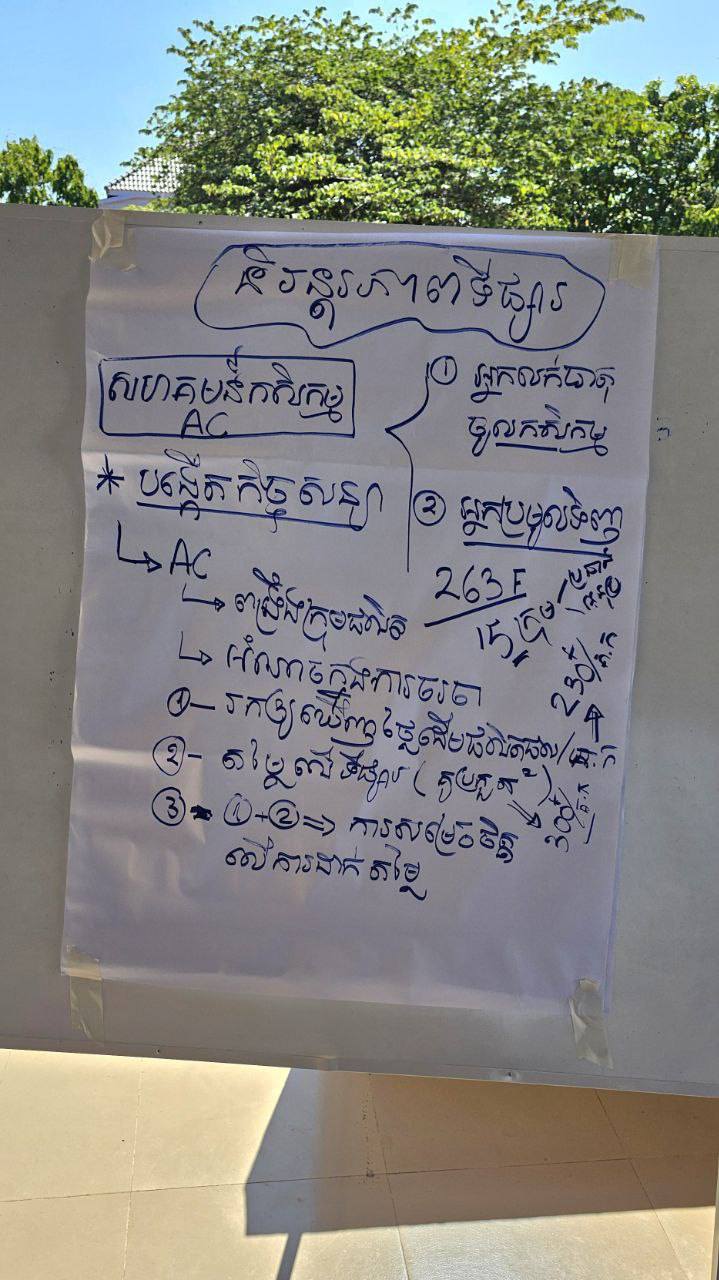 នៅថ្ងៃព្រហស្បតិ៍ ៥រោច ខែបុស្ស ឆ្នាំម្សាញ់ សប្តស័ក សករាជ ២៥៦៩ ត្រូវនឹងថ្ងៃទី៨ ខែមករា ឆ្នាំ២០២៦ ក្រុមការងារគម្រោងប្រកួតប្រជែងខ្សែច្រវាក់តម្លៃនិងលើកកម្ពស់សុវត្ថិភាពកសិកម្ម (ACSEP) ដឹកនាំនិងសម្របសម្រួលដោយ លោក អៀ ឯកសារ អនុប្រធាននាយកដ្ឋានអភិវឌ្ឍន៍សហគមន៍កសិកម្មនៃអគ្គនាយកដ្ឋានកសិកម្ម និងជាប្រធានក្រុមភ្នាក់ងារអនុវត្តគម្រោង រួមដំណើរដោយ មន្ត្រីពីនាយកដ្ឋានកសិឧស្សាហកម្ម មន្ត្រីនៃមន្ទីរកសិកម្ម រុក្ខាប្រមាញ់ និងនេសាទខេត្តព្រះវិហារ និងទីប្រឹក្សាឯកទេសគម្រោង AVCC/ACSEP បានជួបនិងពិភាក្សាជាមួយគណៈកម្មាធិការគ្រប់គ្រងសហគមន៍កសិកម្ម សាមគ្គីភ្នំពេជ្របុរី ភូមិស្របាល ឃុំភ្នំពេញ ស្រុកគូលែន ខេត្តព្រះវិហារ ។ ប្រធានបទៈ