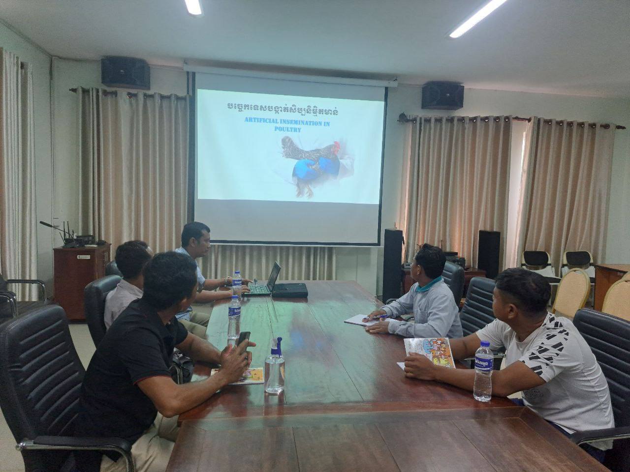 កាលពីថ្ងៃទី១៦ ដល់ថ្ងៃទី១៩ ខែធ្នូ ឆ្នាំ២០២៥ សមាសភាគផ្នែកសុខភាពសត្វ និងផលិតកម្មសត្វ របស់គម្រោងប្រកួតប្រជែងខ្សែច្រវាក់តម្លៃនិងលើកកម្ពស់សុវត្ថិភាពកសិកម្ម (Agricultural Value Chain Competitiveness and Safety Enhancement Project – ACSEP) បានរៀបចំវគ្គបណ្តុះបណ្តាលស្តីពីវិធីសាស្ត្របង្កាត់សិប្បនិម្មិតមាន់ដល់កសិករបង្កាត់ភ្ញាស់កូនមាន់ នៅទីតាំងទាំង៤នៃគម្រោង នៅសាលប្រជុំមន្ទីរកសិកម្ម រុក្ខាប្រមាញ់និងនេសាទខេត្តសៀមរាប និងកសិដ្ឋានចិញ្ចឹមបង្កាត់ភ្ញាស់កូនមាន់ ក្នុងខេត្តសៀមរាប។ វគ្គបណ្តុះបណ្តាលនេះបានទទួលមូលនិធិពីដៃគូអភិវឌ្ឍន៍ ADB។ វគ្គបណ្តុះបណ្តាលនេះមានការចូលរួមពី ក្រុមការងារសមាសភាគផ្នែកសុខភាពសត្វនិងផលិតម្មសត្វ ក្រុមការងារមន្ទីរកសិកម្ម រុក្ខាប្រមាញ់ និងនេសាទខេត្តសៀមរាប គ្រូបណ្តុះបណ្តាលដែលជាកសិករចិញ្ចឹមនិងបង្កាត់ភ្ញាស់កូនមាន់ និងកសិករមកពីទីតាំងទំាង៤នៃគម្រោងដែលសហការលើការសិក្សាស្រាវជ្រាវបង្កាត់ពូជមាន់ស្រុក ចំនួន៩នាក់៖