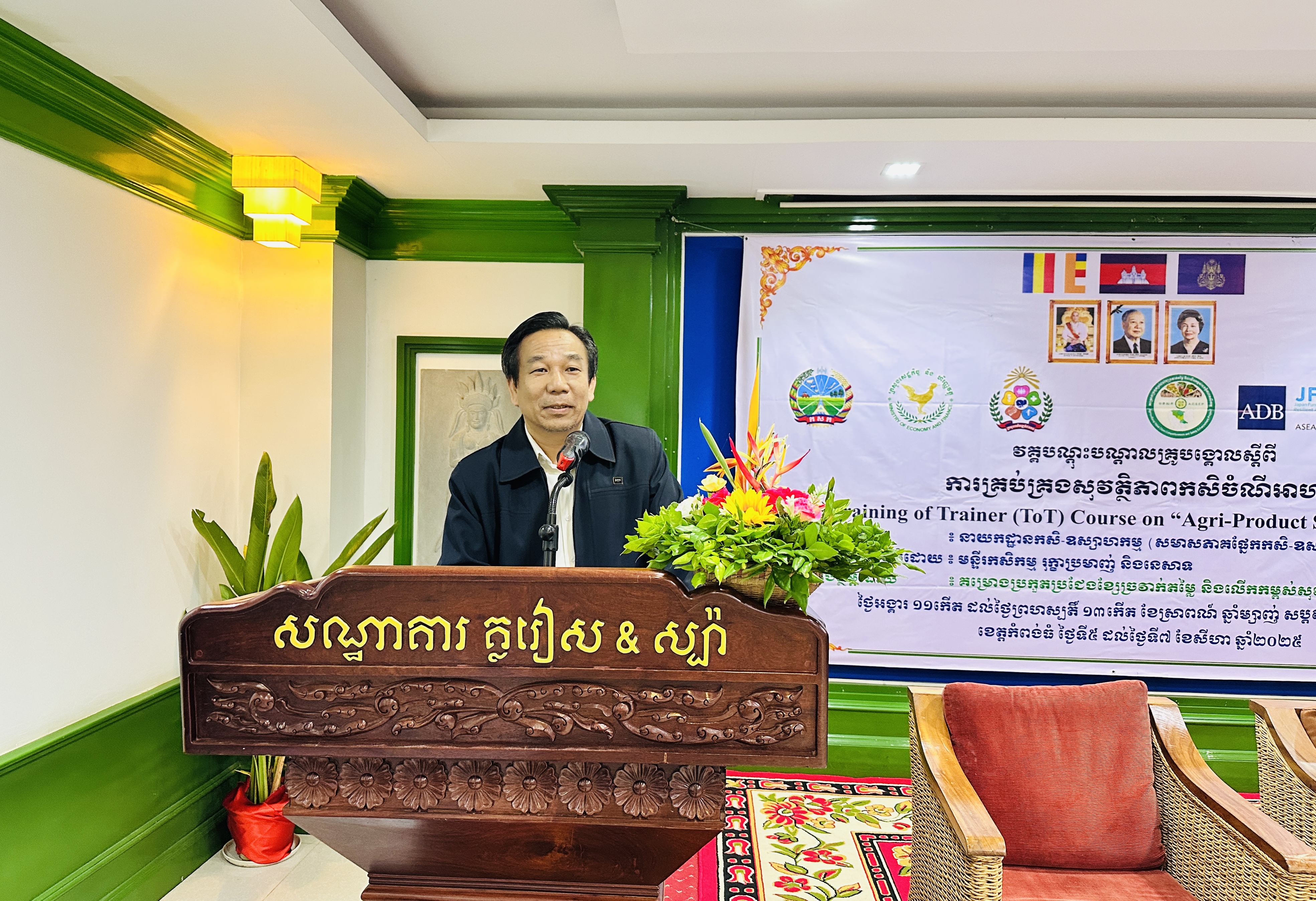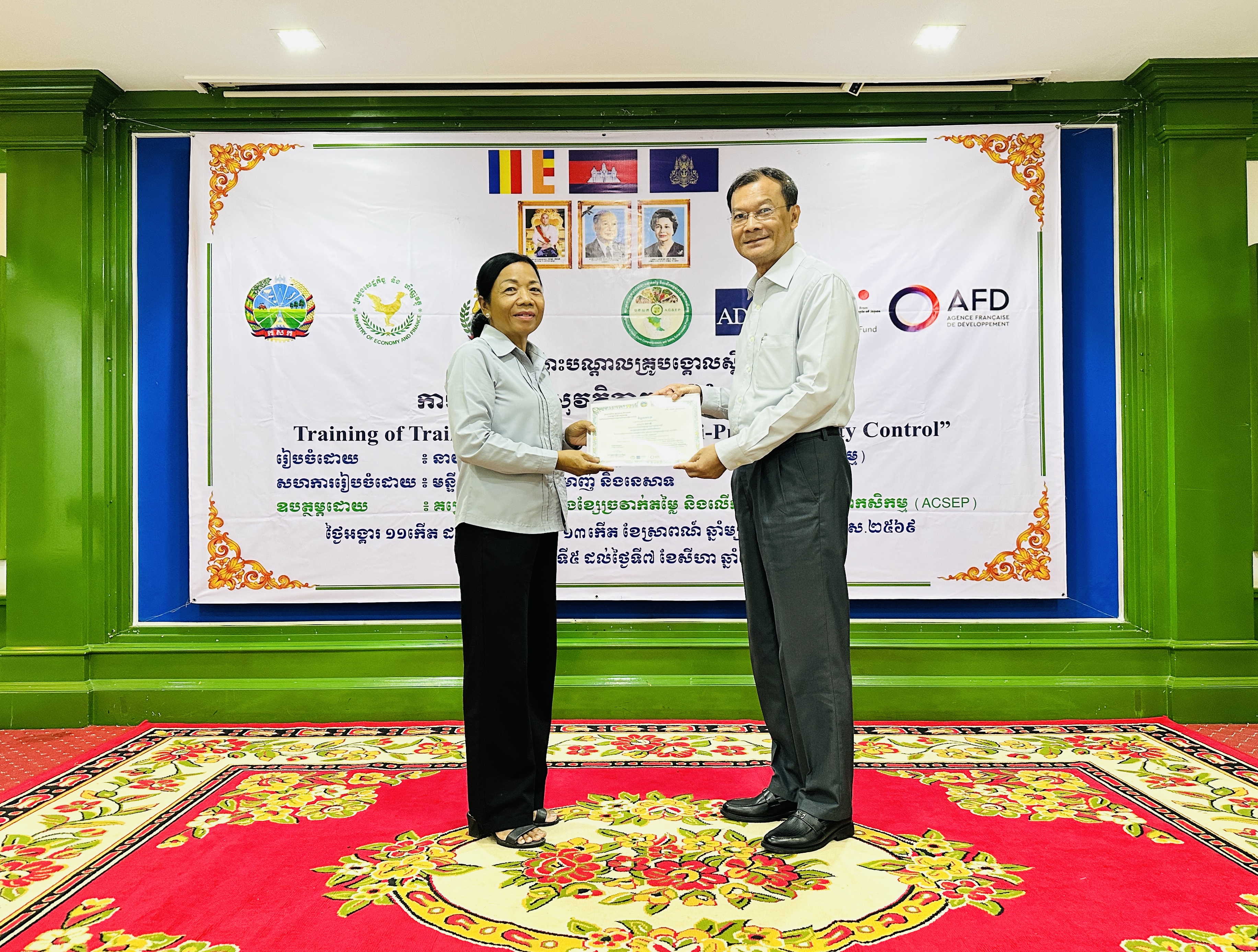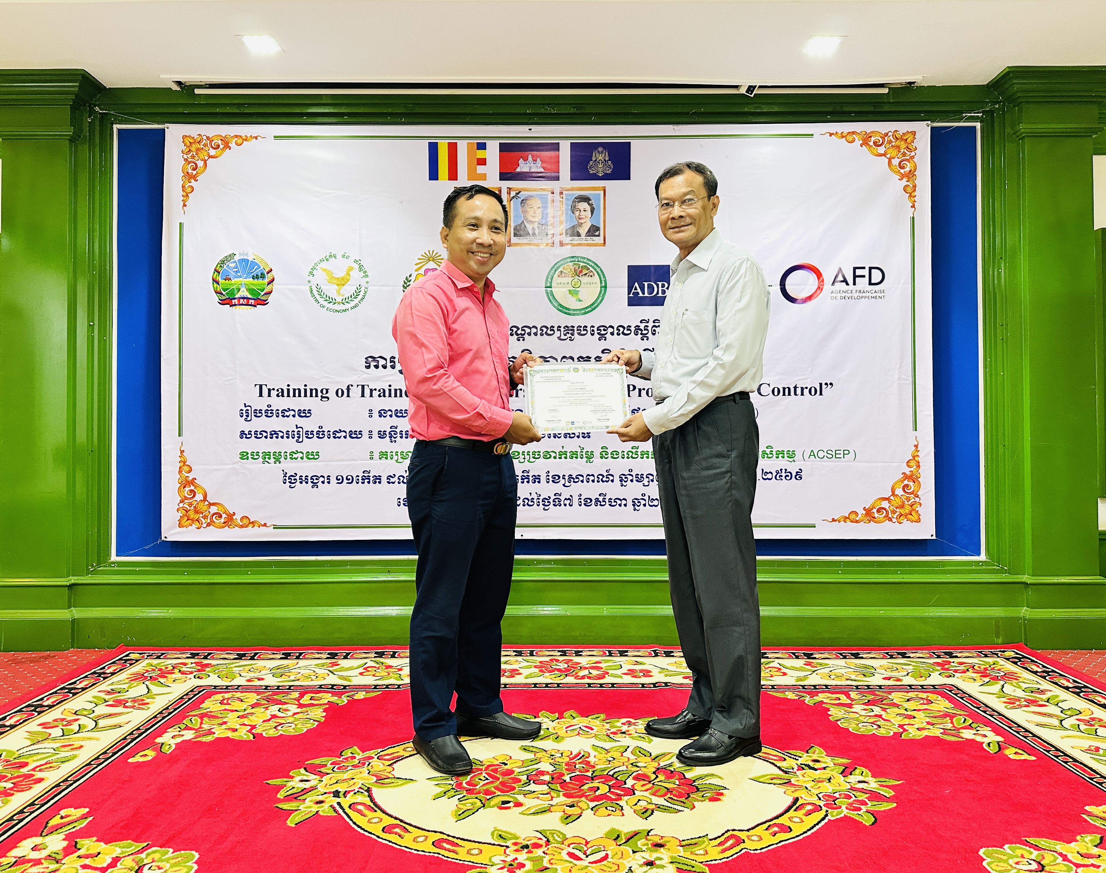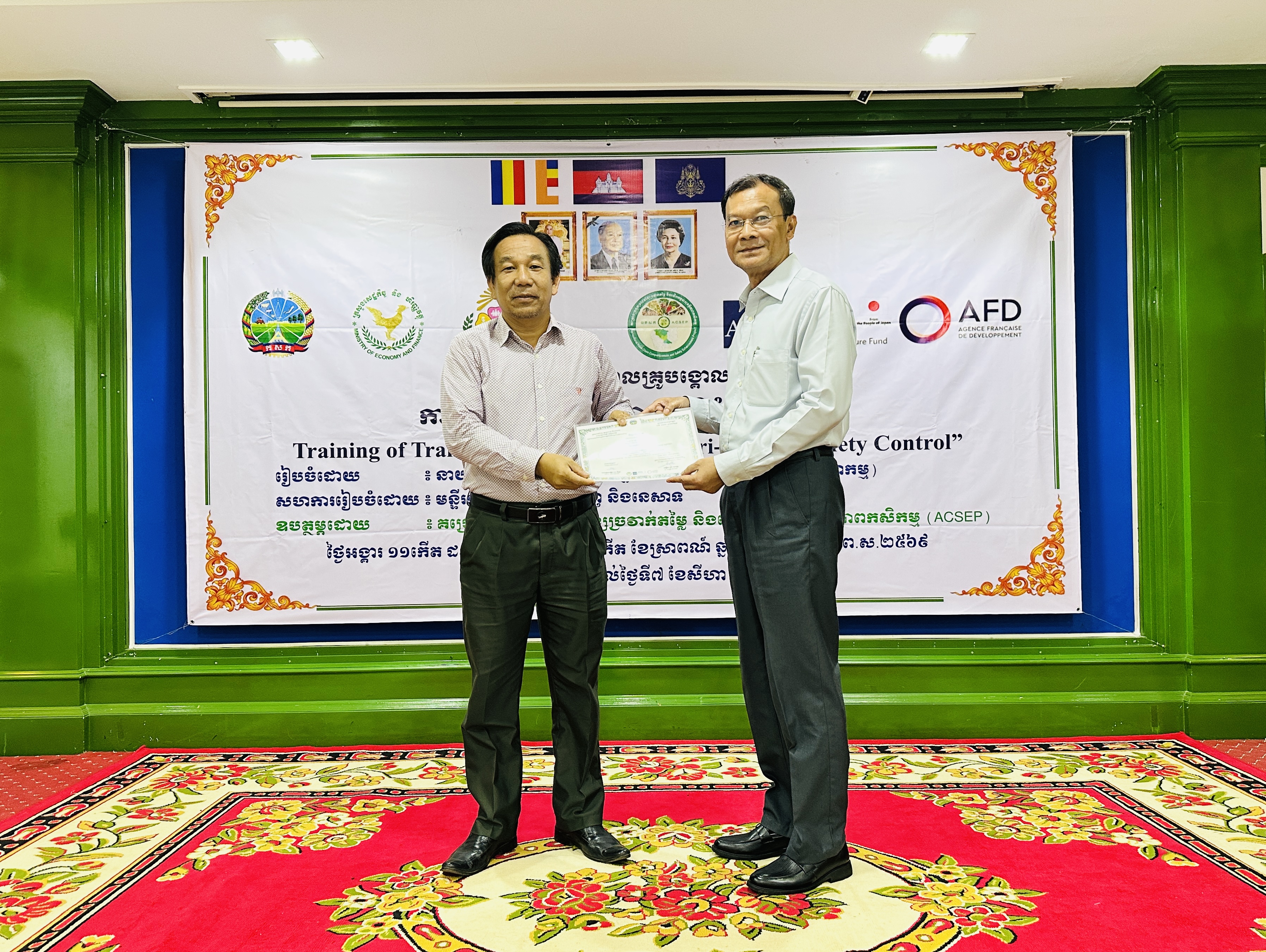 នៅថ្ងៃអង្គារ ១១កើត ដល់ថ្ងៃព្រហស្បត្តិ៍ ១៣កើត ខែស្រាពណ៍ ឆ្នាំម្សាញ់ សប្តស័ក ព.ស.២៥៦៩ ត្រូវនឹងថ្ងៃទី៥ ដល់ថ្ងៃទី៧ ខែសីហា ឆ្នាំ២០២៥ នៅទីរួមខេត្តកំពង់ធំ នាយកដ្ឋានកសិ-ឧស្សាហកម្ម ដែលជាអង្គភាពអនុវត្តគម្រោង សមាសភាគផ្នែកកសិ-ឧស្សាហកម្មនៃគម្រោងប្រកួតប្រជែងខ្សែច្រវាក់តម្លៃ និងលើកកម្ពស់សុវត្ថិភាពកសិកម្ម (ACSEP) ដោយសហការជាមួយមន្ទីរកសិកម្ម រុក្ខាប្រមាញ់ និងនេសាទខេត្តកំពង់ធំ និងខេត្តព្រះវិហារ អង្គភាពអនុវត្តគម្រោងថ្នាក់ខេត្ត បានរៀបចំវគ្គបណ្តុះបណ្តាលគ្រូបង្គោលស្តីពី "ការគ្រប់គ្រងសុវត្ថិភាពកសិចំណីអាហារដល់មន្រ្តីជំនាញពាក់ព័ន្ធថ្នាក់ខេត្តនៃគម្រោង ACSEP" ក្រោមអធិបតីភាពបណ្ឌិត ហង់ សុវណ្ណ អនុប្រធាននាយកដ្ឋានកសិ-ឧស្សាហកម្ម និងជាប្រធានសមាសភាគផ្នែកកសិ-ឧស្សាហកម្ម តំណាងដ៏ខ្ពង់ខ្ពស់ ឯកឧត្តមបណ្ឌិត សរ ចិត្រា អគ្គលេខាធិការក្រសួង កសិកម្ម រុក្ខាប្រមាញ់ និងនេសាទ និងជានាយកគម្រោង ACSEP។