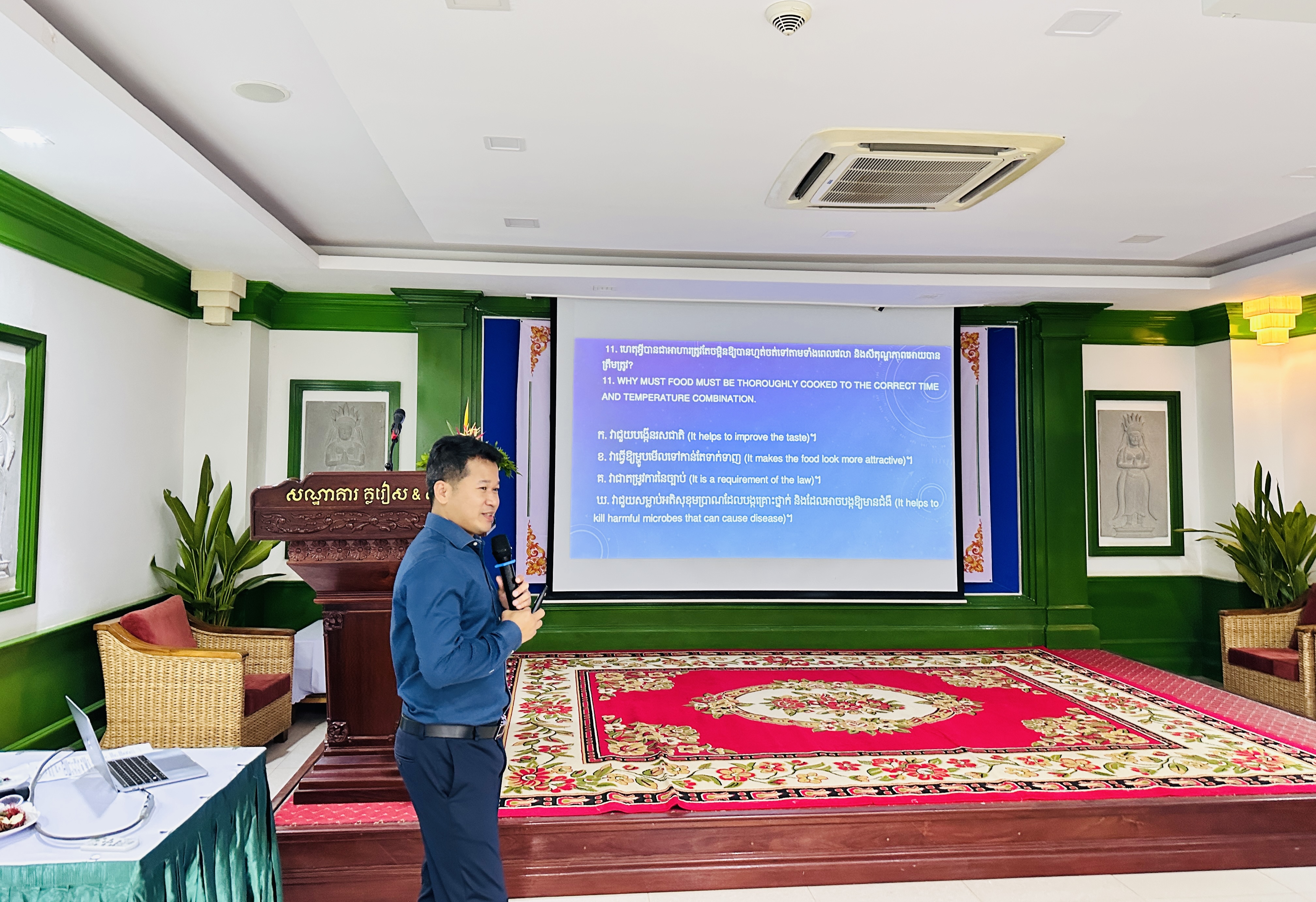 វគ្គបណ្តុះបណ្តាលមានការអញ្ជើញចូលរួមពីមន្រ្តីគម្រោងថ្នាក់ខេត្តកំពង់ធំ និងខេត្តព្រះវិហារ ព្រមទាំងមន្រ្តីជំនាញពាក់ព័ន្ធ សរុបចំនួន ៣០រូប (ស្រ្តី ៧រូប)។ វគ្គបណ្តុះបណ្តាលនេះរៀបចំឡើងក្នុងគោលបំណង កសាងសមត្ថភាពដល់មន្រ្តីជំនាញលើការគ្រប់គ្រងសុវត្ថិភាពចំណីអាហារ ពាក់ព័ន្ធនឹងមូលដ្ឋានគ្រឹះ និងគោលការណ៍អនុវត្តប្រព័ន្ធគ្រប់គ្រង សុវត្ថិភាពចំណីអាហារ (GHP/GMP/HACCP) ដើម្បីមានលទ្ធភាពគ្រប់គ្រាន់ក្នុងការផ្តល់ការប្រឹក្សាយោបល់ និងតាមដានសកម្មភាពជាមួយសហគ្រាសកសិកម្មដែលបានជ្រើសរើសក្នុងគម្រោង លើការរៀបចំផែនការអនុវត្ត និងការស្នើនូវវិញ្ញាបនបត្រគ្រប់គ្រងគុណភាពសុវត្ថិភាពចំណីអាហារ (GHP/GMP/HACCP) ស្របតាម សូចនាករដែលបានកំណត់នៅក្នុងក្របខណ្ឌគម្រោង ACSEP។